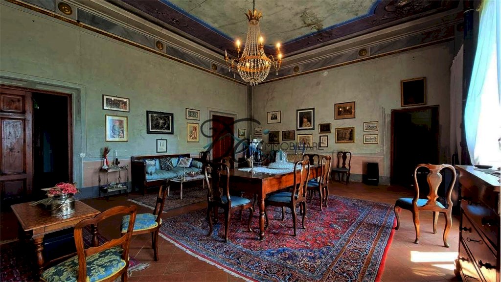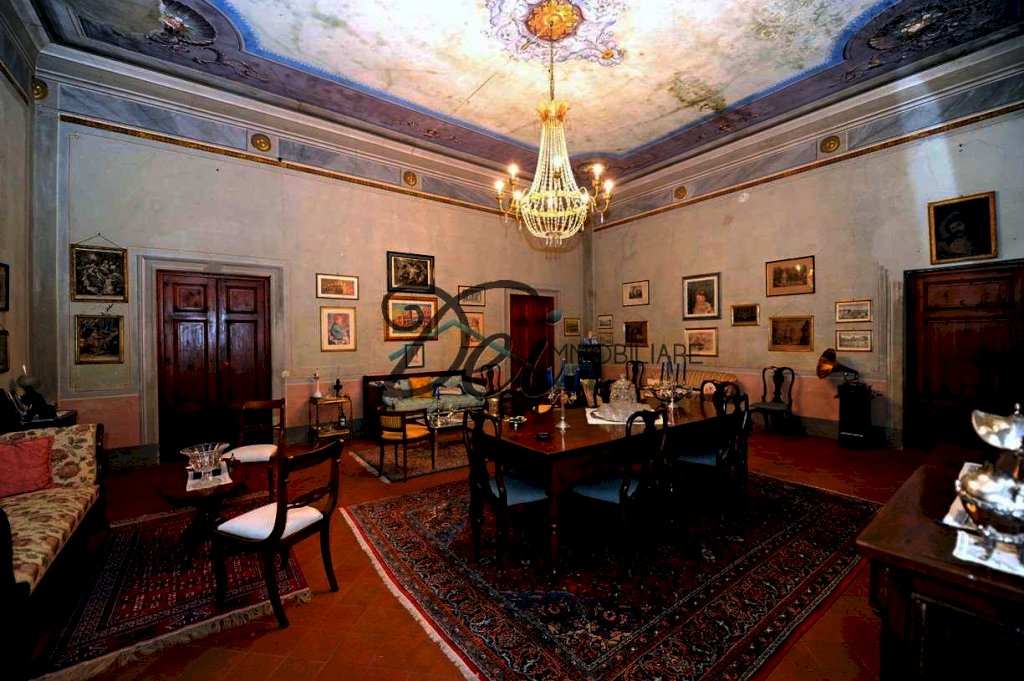 Salendo da una grande scala in pietra di Matraia si raggiunge il piano nobile della villa, attualmente utilizzato come unico grande appartamento, composto da: ampio e luminoso salone affrescato, due soggiorni, cucina, studio, quattro camere padronali, tre bagni, tre terrazze panoramiche e altri vani accessori.