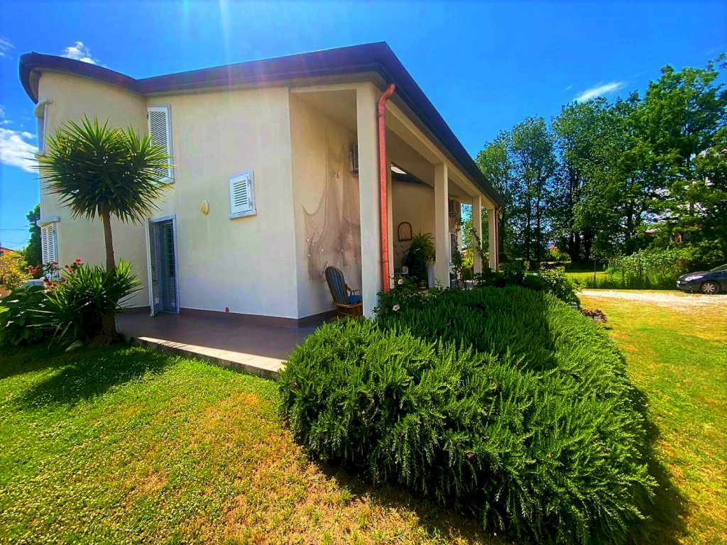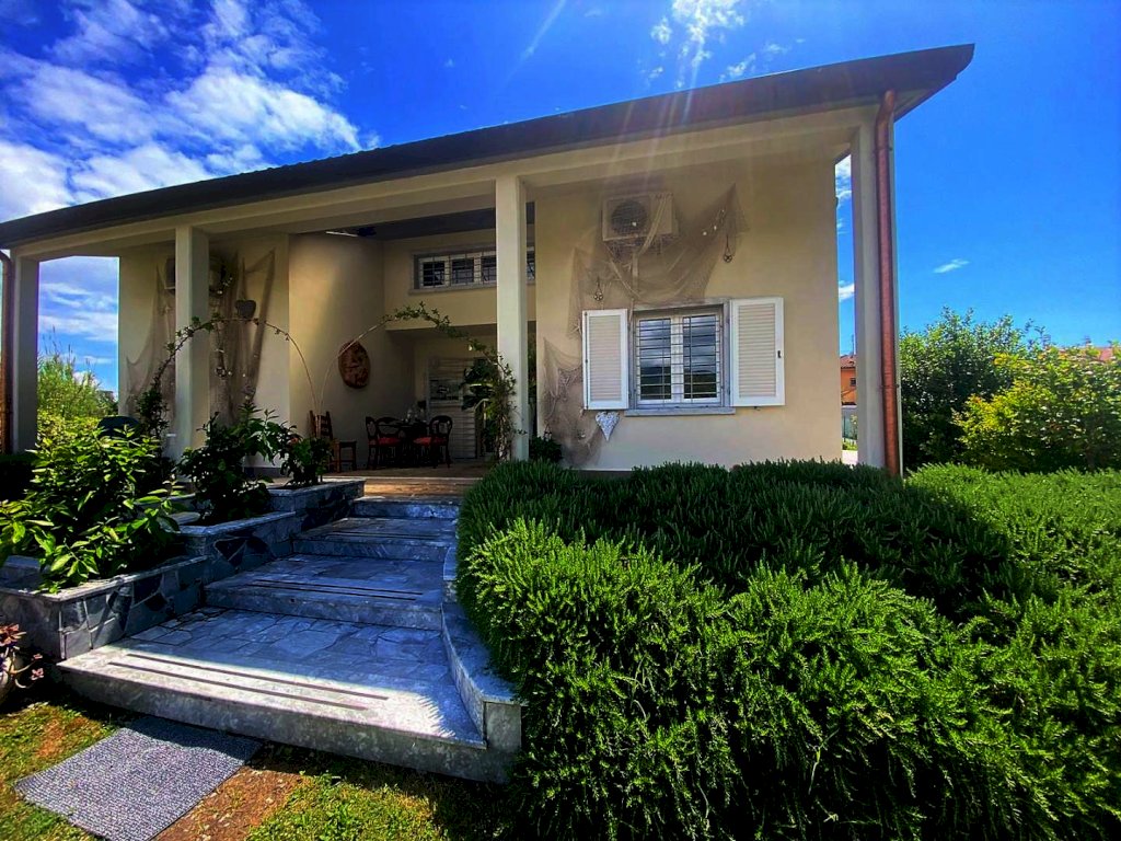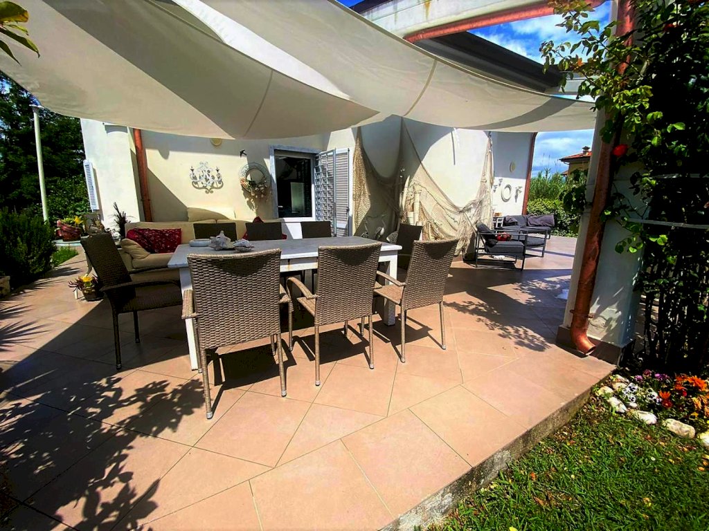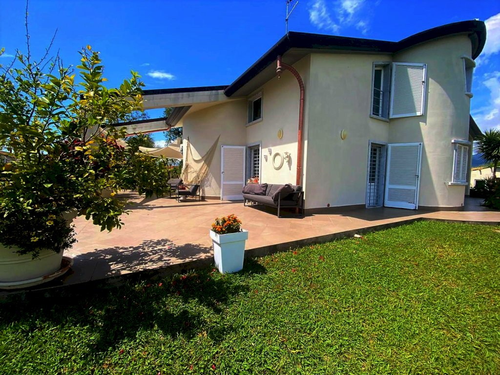 Marina Di Carrara: proponiamo in vendita villa singola di 200 mq con c.a 1500 mq di giardino con piscina fuori terra, a meno di 1000 m dal mare. L'immobile disposto su due livelli è così composto: al piano terra si accede da una meravigliosa veranda alla zona giorno con soggiorno e cucina a vista; tramite disimpegno si accede sulla sinistra ad una camera matrimoniale e bagno finestrato con doccia, mentre sulla destra ulteriore camera matrimoniale studio e bagno. Tramite un elegante scala in marmo si accede al piano primo dove troviamo soggiorno open-space, un ampia camera matrimoniale, bagno e cabina armadi. L'immobile dispone di cappotto termico, tetto coibentato,pozzo, riscaldamento autonomo a radiatori, condizionatori aria caldo/ freddo, aspirapolvere centralizzato, infissi in doppio vetro, camera d'aria con bocchette aspiranti, pavimenti e rivestimenti in marmo, cancello elettrico.
