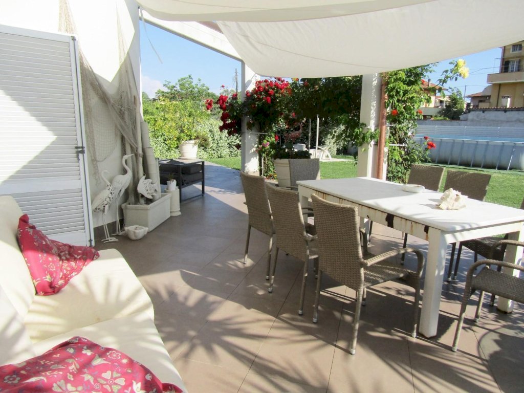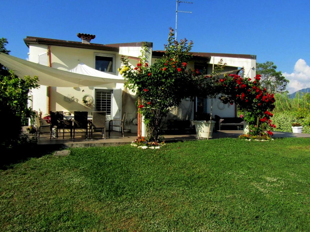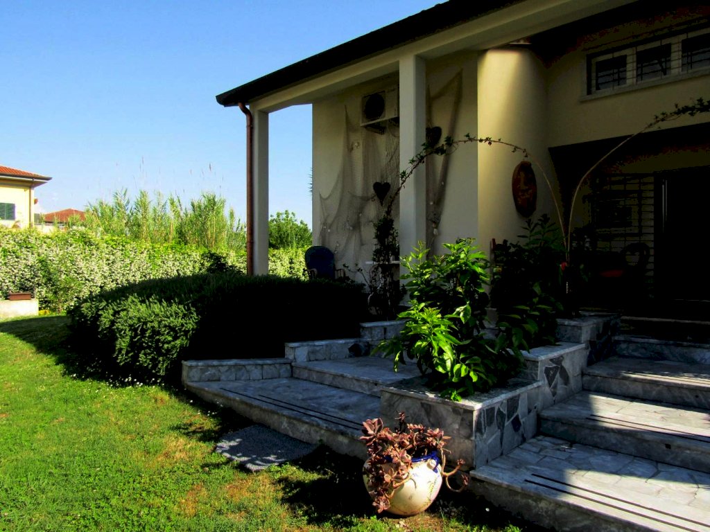 A Marina di Carrara, in zona dislocata dal centro urbano, vendiamo Villa di pregio ed elegante. L' immobile si articola su 2 livelli ed è circondato da 1500 mq di giardino privato. Al piano terra troviamo un salone con cucina a vista, 2 camere, uno studio, 2 bagni; al piano superiore, mansardato, vi sono 3 vani e un bagno. La casa è corredata da loggiati esterni e verande che consentono di vivere all' aperto. Vi è una piscina fuori terra nel giardino. Dotata di aria condizionata, aspirapolvere centralizzata, pozzo per irrigare, sistema di allarme. Rifinita con marmi pregiati e particolari raffinati.
