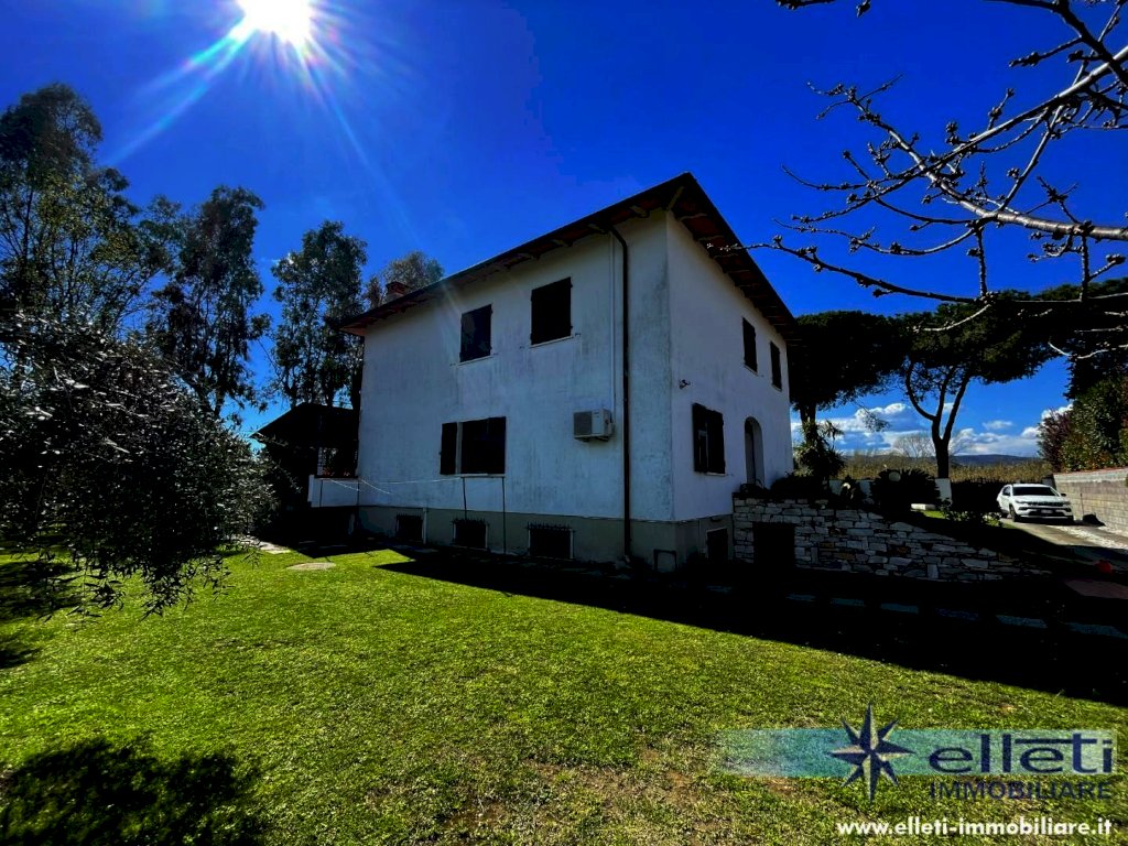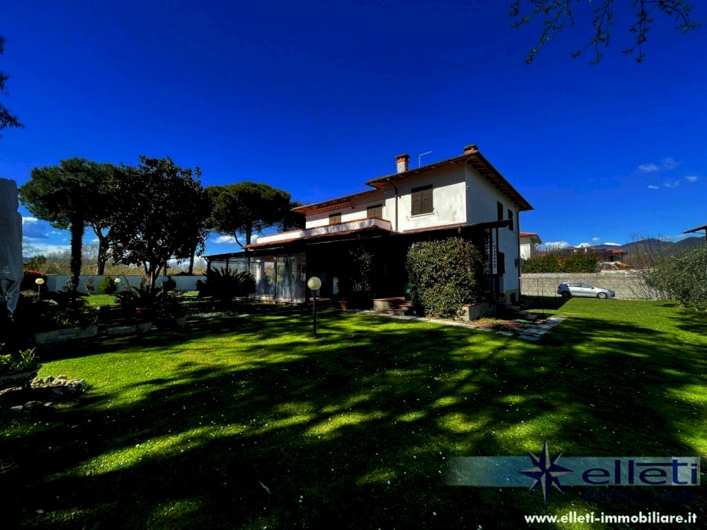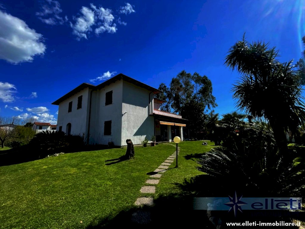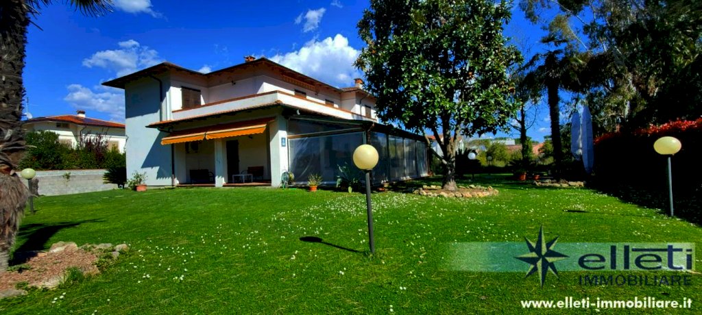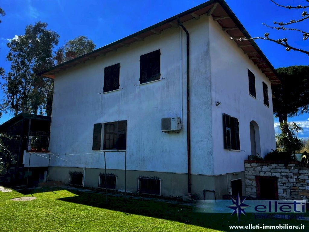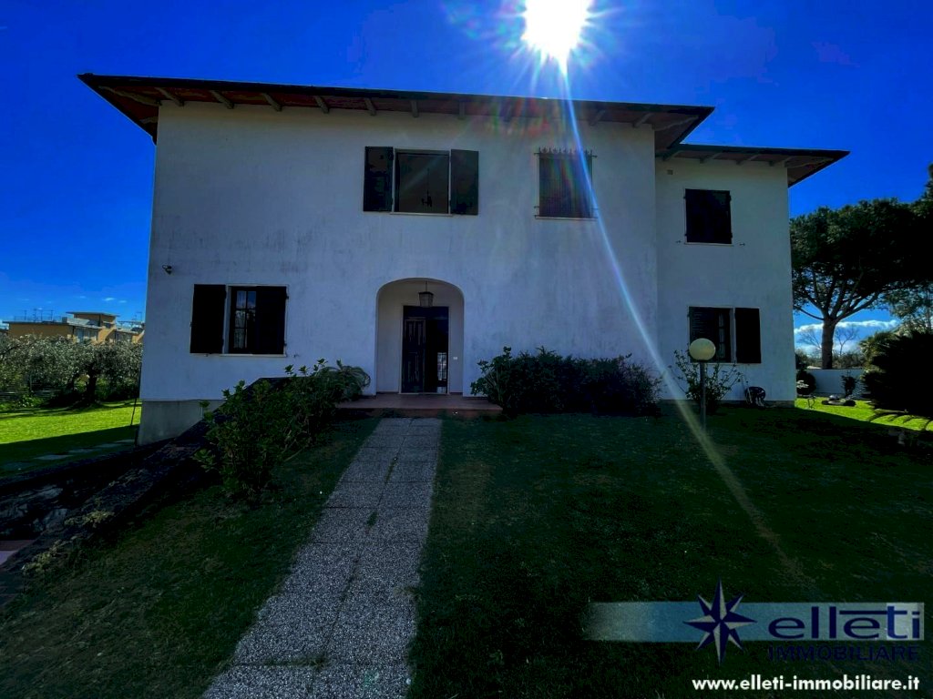 MARINA DI CARRARA - A circa 400 metri dal mare e in posizione riservata, si vende villa singola di circa 300 mq disposta su due livelli. L'immobile, che è posizionato all'interno di un lotto di proprietà esclusiva di 1700 mq si contraddistingue per fascino e comodità degli ambienti. Al suo interno è composto da ingresso su ampia sala con camino, sala pranzo, cucina abitabile, bagno ed una camera al piano terra. Tramite bellissima scala in marmo si accede al piano primo composto da cinque camere matrimoniali ognuna di esse con bagno esclusivo ed una terrazza d'angolo di circa 50 mq. Completa la proprietà uno splendido portico ideale per pranzi e cene all'aperto. Vari posti auto. L'immobile risulta in buono stato di manutenzione è abitabile fin da subito. Rif. M76.