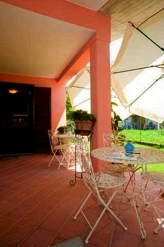 A corredo circa 1000 mq di giardino privato con alberi di alto fusto tra cui un magnifico ginko biloba e ca 7 mq di terrazza con affaccio sulle colline, è fornita di impianto antifurto collegabile con forze dell'ordine, pannello solare per la produzione di acqua calda, impianto d'irrigazione automatica del prato, cancello in ferro battuto con apertura/chiusura per mezzo di telecomando più due cancelli in ferro battuto per passaggio pedonale, barbecue in muratura ed inoltre possibilità di installare una piscina.