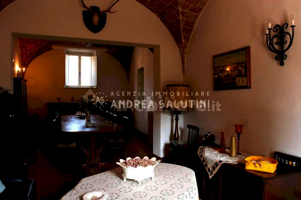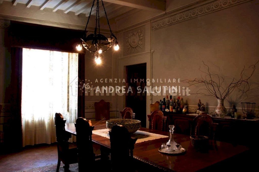 Cevoli - Casciana Terme Lari - Vendesi palazzo signorile dalle ampie metrature posto in posizione panoramica. L'immobile dislocato su quattro livelli è catastalmente suddiviso in 3 unità abitative oltre ad ampio garage e si compone in: al Piano terra: stanza di ingresso, cucina industriale con passa vivande per entrambe le sale da pranzo, sala da pranzo piccola con soffitti e pareti affrescate, sala da pranzo grande con soffitti a volte a crociera, bagno di servizio, 4 ripostigli (di cui uno adibito a locale caldaia) ed ampio garage di oltre 50 mq; 1° Piano: interamente affrescato al quale si accede da scala interna, disimpegno, ampio salone di circa 50 mq con soffitti alti 4 mt, sala da pranzo, tinello con camino, cucinotto, 3 camere da letto, studio e doppi servizi; 2° piano: con accesso da scala interna, 6 camere, ampia mansarda, ripostiglio e bella terrazza panoramica di circa 20 mq. Completa la proprietà il giardino esclusivo di mq 4000 con cantina scavata sotto la casa che si sviluppa sul retro dell' immobile. Classe energetica: G - Rif. 2277-L