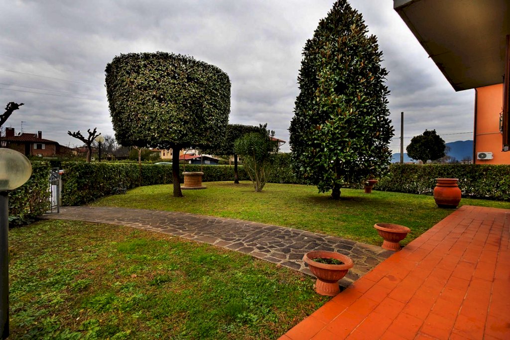 In consteto residenziale lontano dal traffico ma a pochi minuti dalla Città proponiamo questa splendida VILLA SINGOLA costrutita negli anni 90 che si presenta tuttora in perfette condizioni pronta da abitare. Libera su quattro lati gode di un ampio giardino a verde di circa 450 mq che la circonda. Un porticato ci accoglie all'ingresso di casa e ci accompagna all'interno del soggiorno. La cucina abitabile resta separata dal soggiorno, corredata di ripostiglio, bagno con finestra e doccia. Dalla cucina è possibile uscire in giardino e grazie al pergolato attrezzato con area barbecue è ideale per mangiare fuori. Al piano primo troviamo il reparto notte composto da tre camere da letto ( due matrimoniali ed una cameretta) due delle quali hanno accesso al balcone che si affaccia sul giardino. Completa il reparto notte il bagno con vasca e finestra e l'accesso al sottotetto tramite la botola con scala retrattile. Il contesto residenziale circostante garantisce tranquillità.