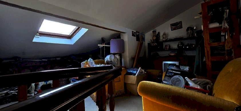 e disimpegno da cui si può accedere tramite una scala a chiocciola all'ampio locale sottotetto il quale è dotato di