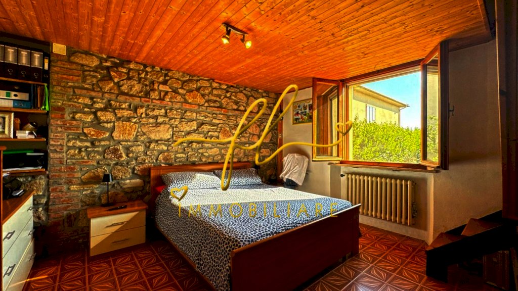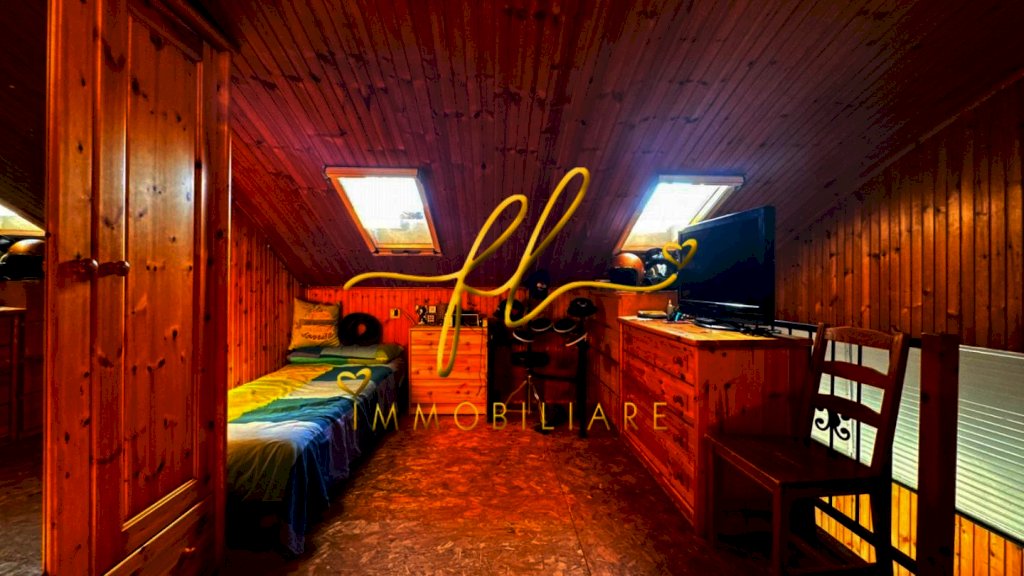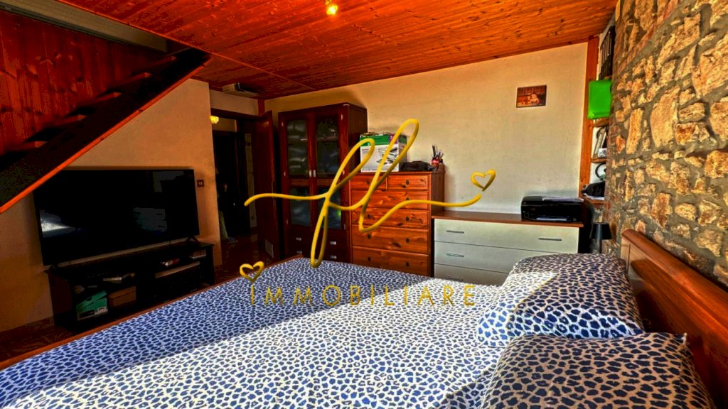 Un portico di ingresso ci conduce all’interno dell’immobile. Dal taglio classico, salone con camino, cucina abitabile con scesa esterna ad un vano uso lavanderia e ulteriore bagno. Reparto notte con 2 camere matrimoniali di cui una con altra camera in soppalco, e bagno. Di fronte, altro terreno di proprietà.