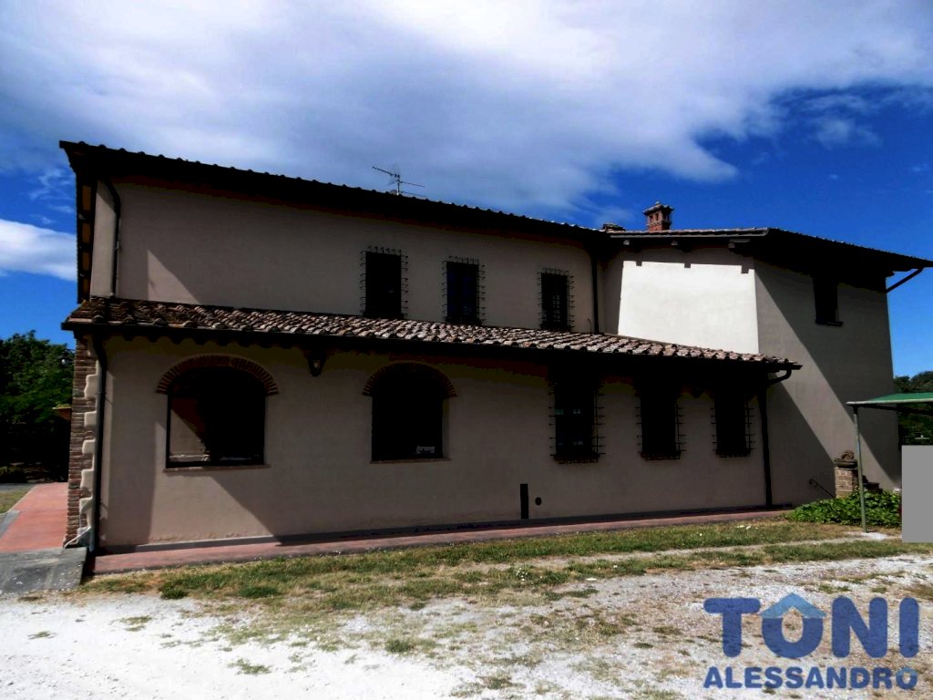 CERRETO GUIDI collinare, importante podere composto da un fabbricato principale di circa 700 mq, oltre 3 fienili di circa 300 mq e 4 ettari di terreni circostanti, in posizione magnifica, panoramica e dominante. La colonica principale è completamente ristrutturata di recente, ed è divisa in 3 appartamenti autonomi, sapientemente rifiniti, mantenendo le caratteristiche rurali originarie e con l'inserimento di elementi che le arricchiscono senza mutarne i connotati. I loggiati e le aie, anch'essi riportati ai loro splendori, trasportano nel tempo ad un secolo fa, quando i momenti e le sensazioni della campagna riempivano di orgoglio chi la possedeva e la accudiva, come una creatura capace di contraccambiare tutto il bene ricevuto. I fienili possono essere ristrutturati in base alle destinazioni che vogliamo assegnargli e sono autonomi dal corpo principale. I terreni sono collinari, coltivati e mantenuti in perfetta efficienza, con una perfetta regimazione delle acque e con vialetti romantici fra gli alberi. Suggestivo, come una perla segreta, il laghetto con la flora e la fauna degna di un orto botanico. C.e.: G. Richiesti 1.190.000 €