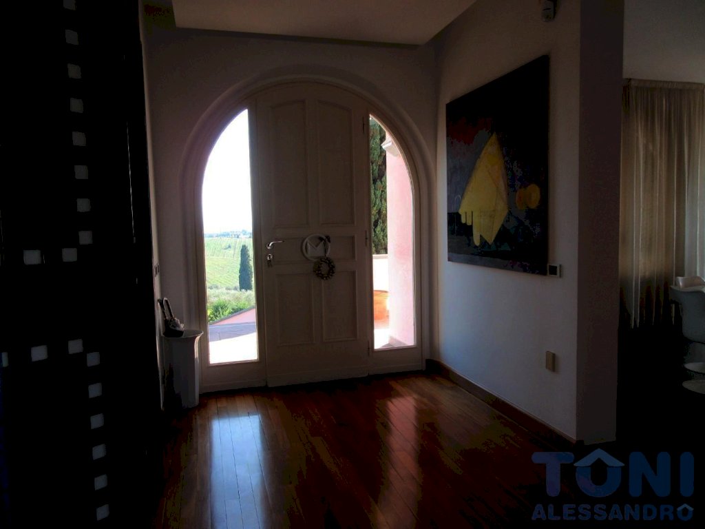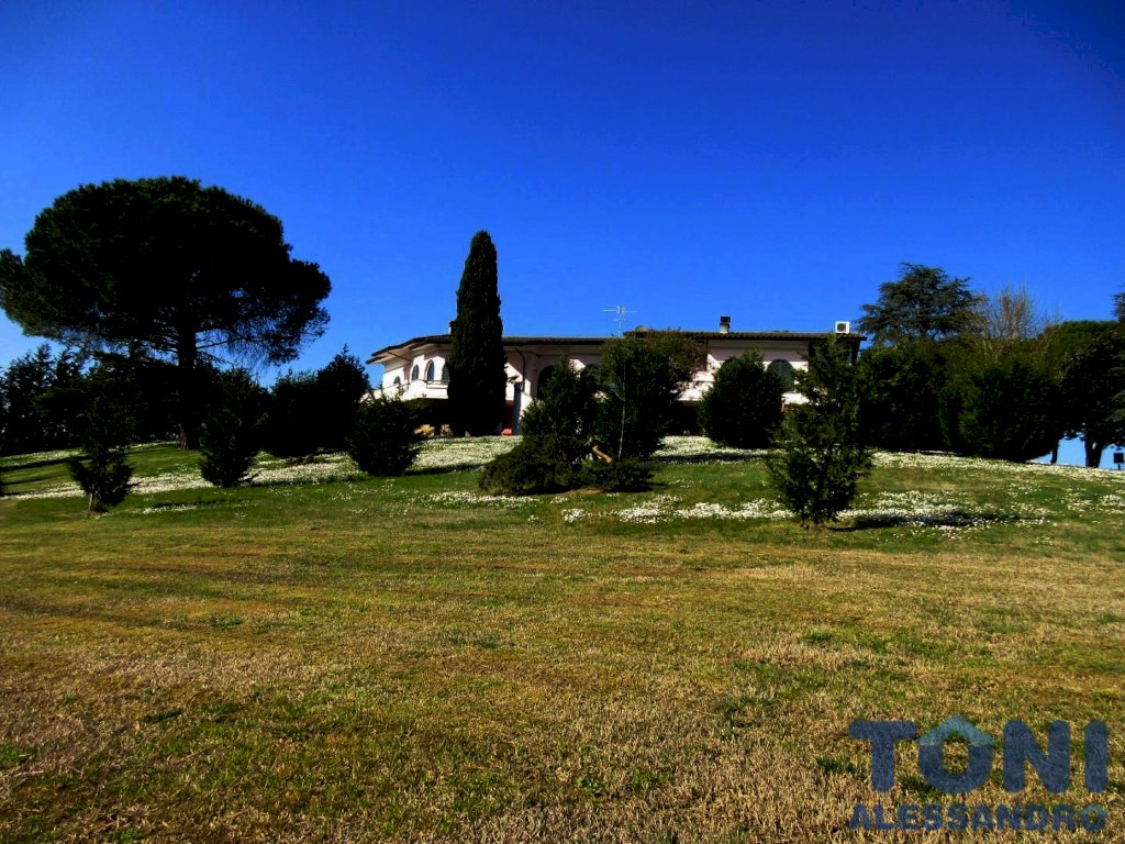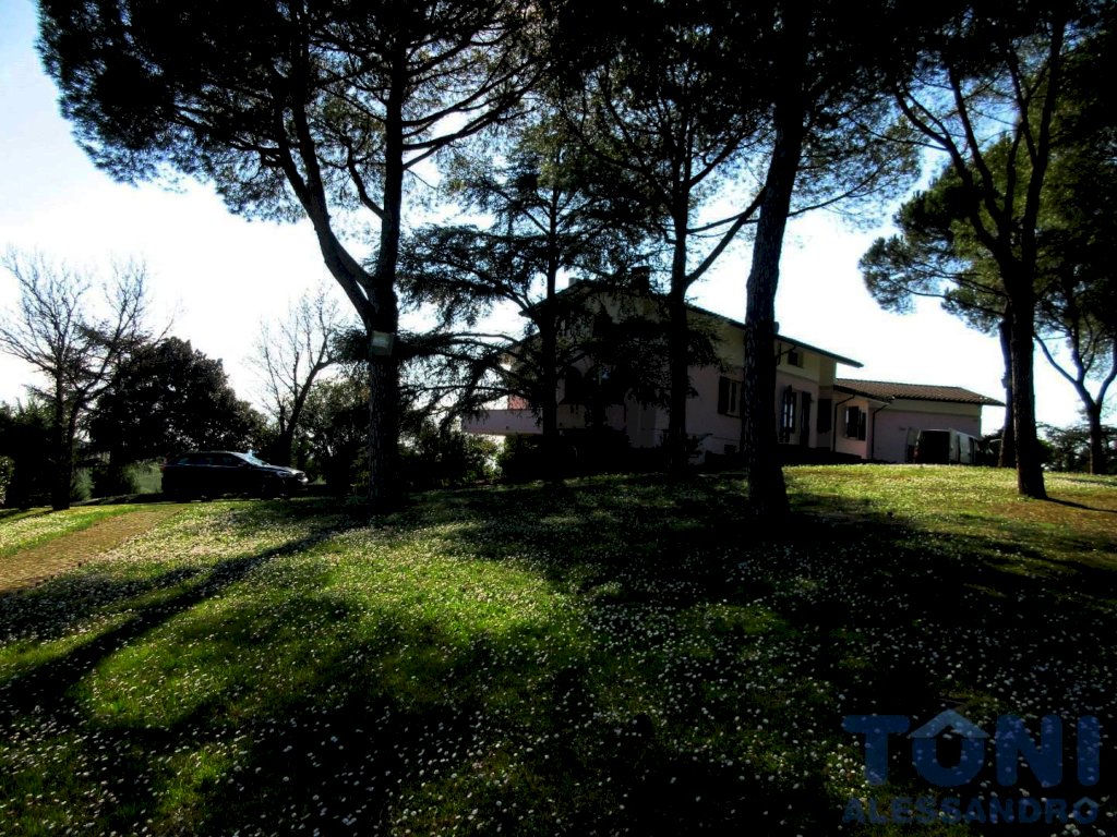 CERRETO GUIDI pressi, bellissima villa in vendita: affascinante casa in campagna. La dimora ha un parco intorno di 3 ettari, posta in collina con affacci su un panorama suggestivo. La luminosa villa è disposta principalmente a piano rialzato, ed ha numerose aperture, molto grandi, che irradiano all'interno la luce solare in tutte le stanze e dal suo interno possiamo godere di una vista favolosa sulla campagna e sul proprio parco. La villa sono circa 500 metri quadri, divisi in 250 metri quadri di abitazione principale e 250 metri quadri fra taverna, locali accessori, garage, lavanderia e locali deposito. Il viale privato all'interno del parco ci dà l'accesso. L'importante scala ci accoglie. L'ingresso nel salone è emozionante, bello armonioso e infinito, con tante aperture sull'esterno. Razionale la sala da pranzo e la cucina con la dispensa. Il reparto notte è diviso in 5 camere da letto e 3 bagni, con la camera degli ospiti dedicata e riservata. La taverna è perfetta per ospitare amici e passare giornate in allegria, luminosa, con caminetto e cucinotto dedicato. Inoltre ha ulteriori locali e bagni, destinati in maniera funzionale per la servitù e per il mantenimento del giardino. La villa è di rara bellezza, con una progettazione di fruibilità intelligente e razionale degli spazi interni. Il parco è ben tenuto ed è dotato di campo da tennis. In pochi minuti raggiungiamo tutti i servizi primari, le scuole, i centri abitati e la FI-PI-LI. C.e.: G. 1.950.000