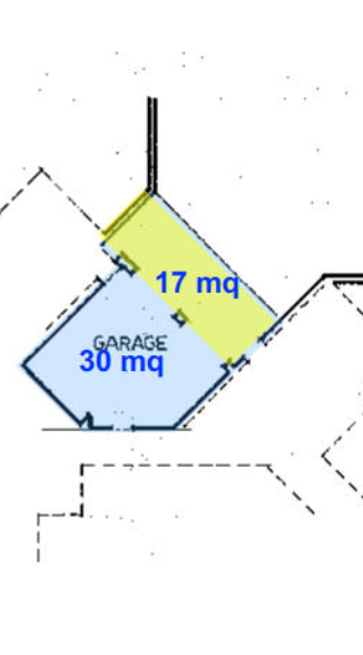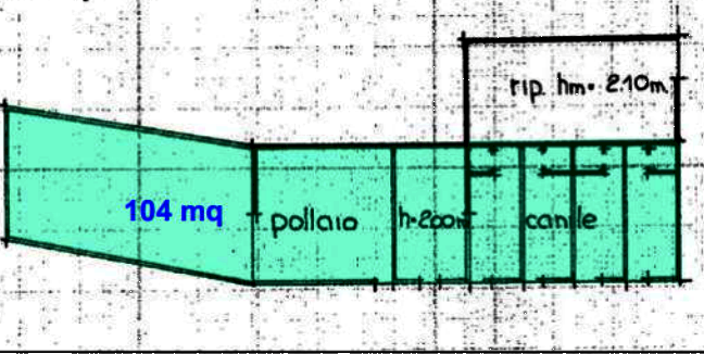 Fa parte della struttura un'autorimessa di 30mq al piano seminterrato anticipata da un portico di mq 17 e un ricovero animali di mq 104, con terreno scoperto di pertinenza di 533 mq.