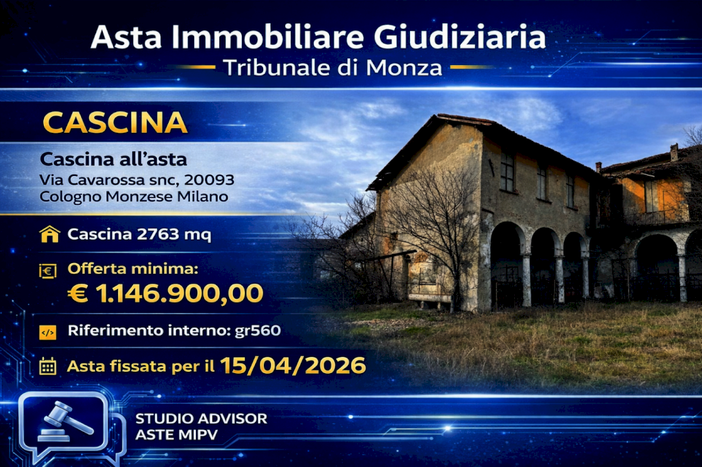 Questo annuncio è stato redatto da Studio Advisor Aste MiPv sulla base della documentazione ufficiale di vendita. Le informazioni qui riportate non sostituiscono la pubblicità legale e potrebbero contenere imprecisioni o variazioni rispetto agli atti ufficiali. Studio Advisor Aste MiPv declina ogni responsabilità per errori, omissioni o modifiche intervenute successivamente alla pubblicazione.
