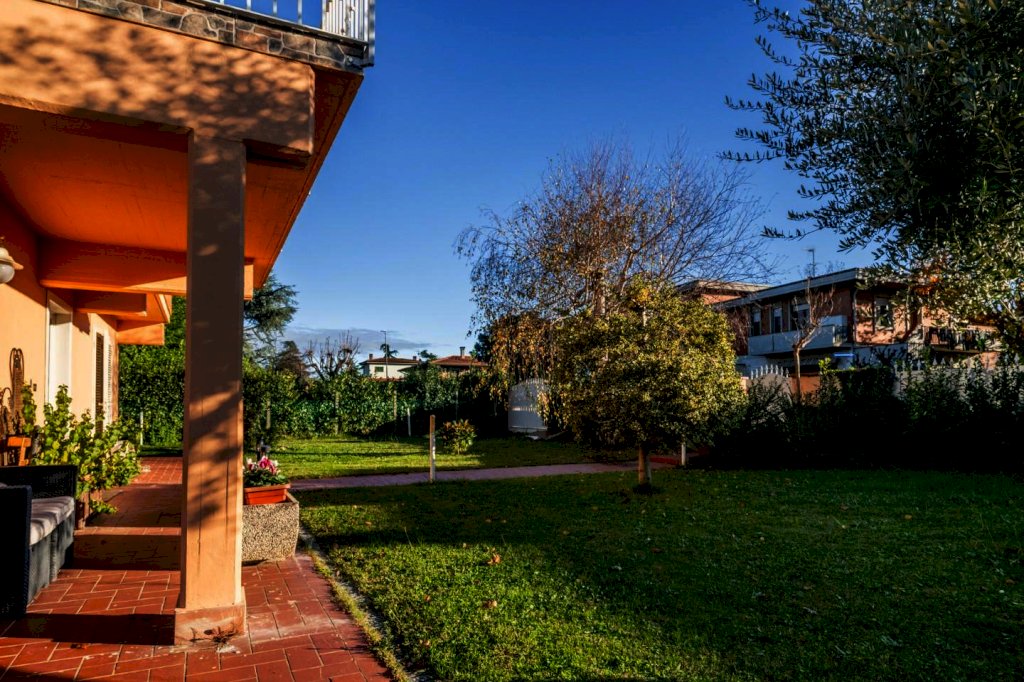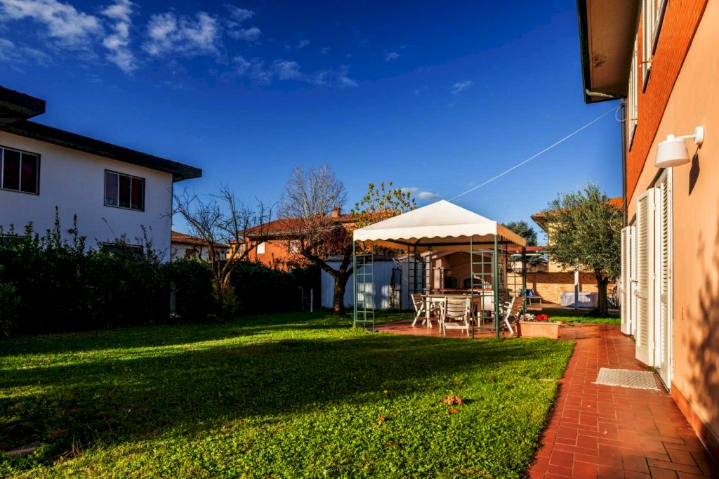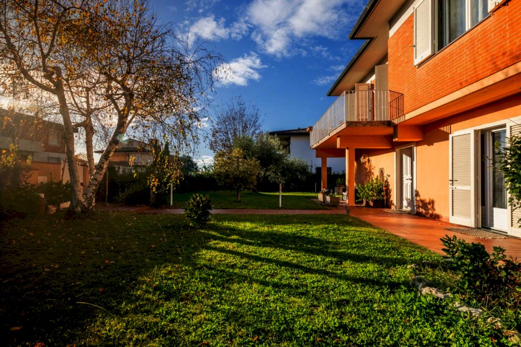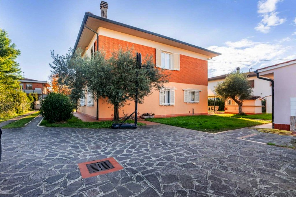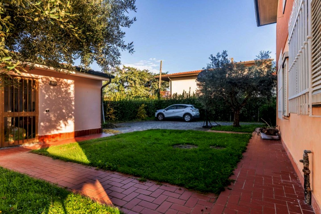 In zona signorile di Cenaia, a due passi dal centro e vicina alla pista ciclabile, questa raffinata abitazione ha accesso da cancello carrabile e pedonale sul verde curato che circonda le sue mura.