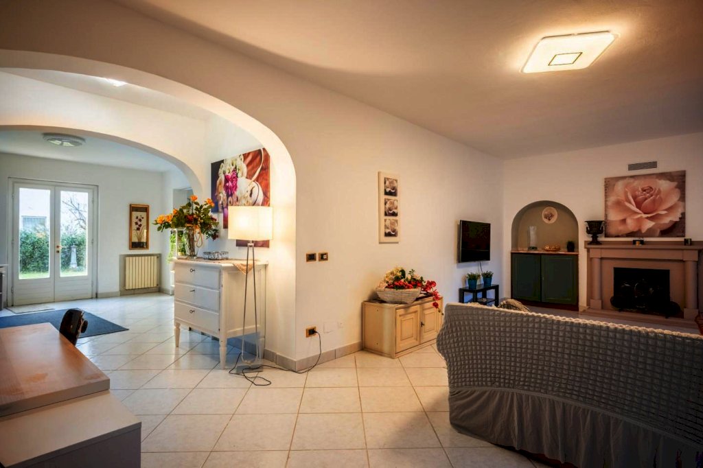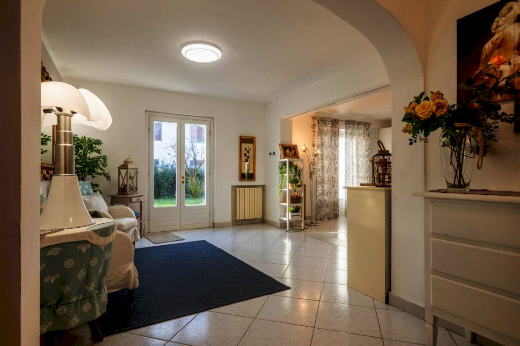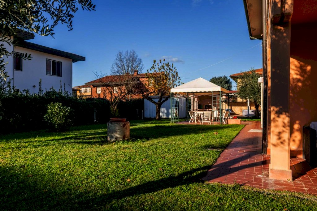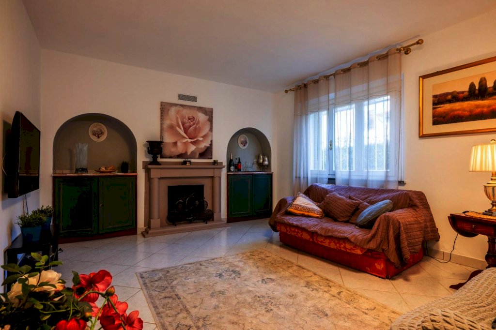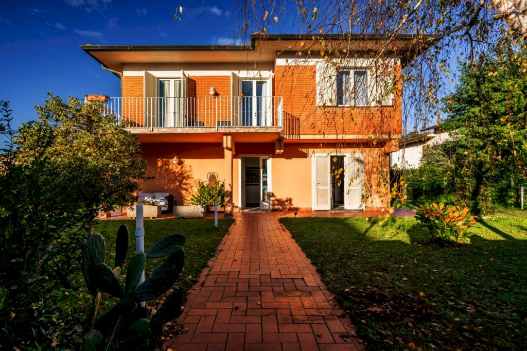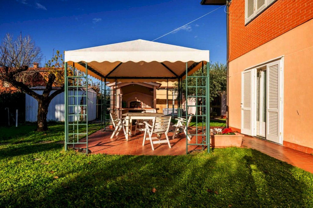 In zona signorile di Cenaia, a due passi dal centro e vicina alla pista ciclabile, questa raffinata abitazione ha accesso da cancello carrabile e pedonale sul verde curato che circonda le sue mura.