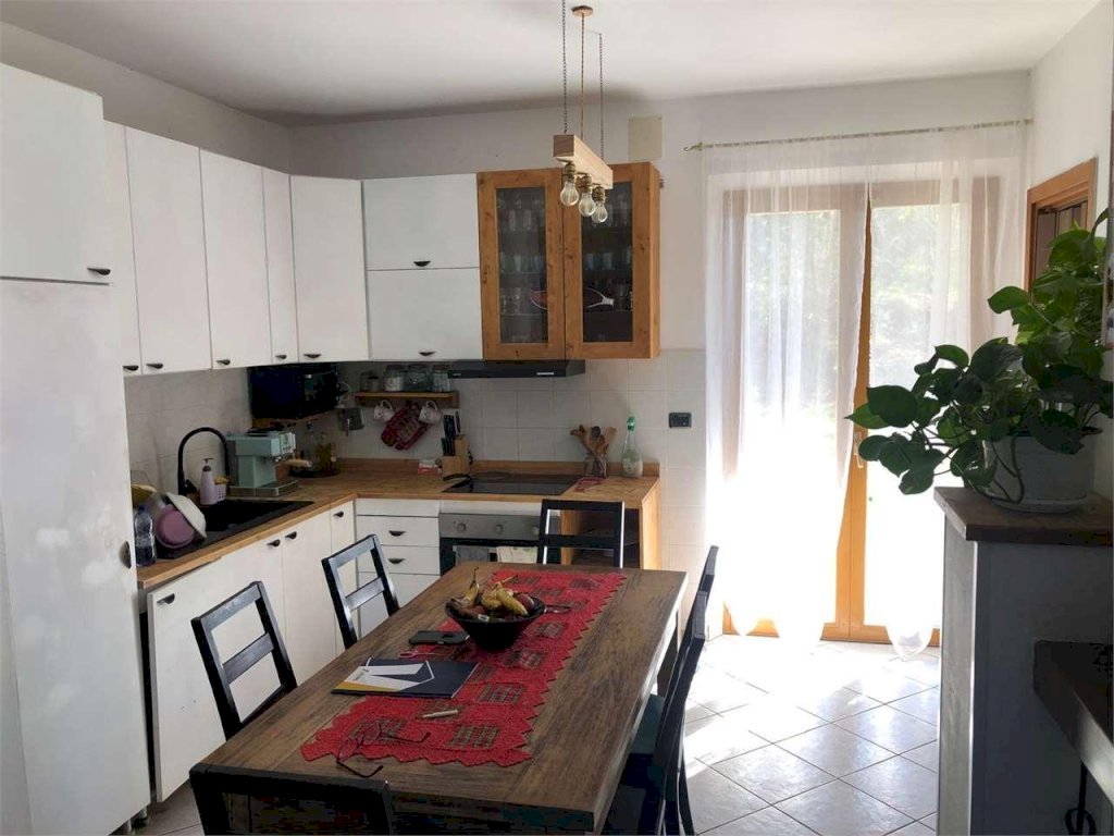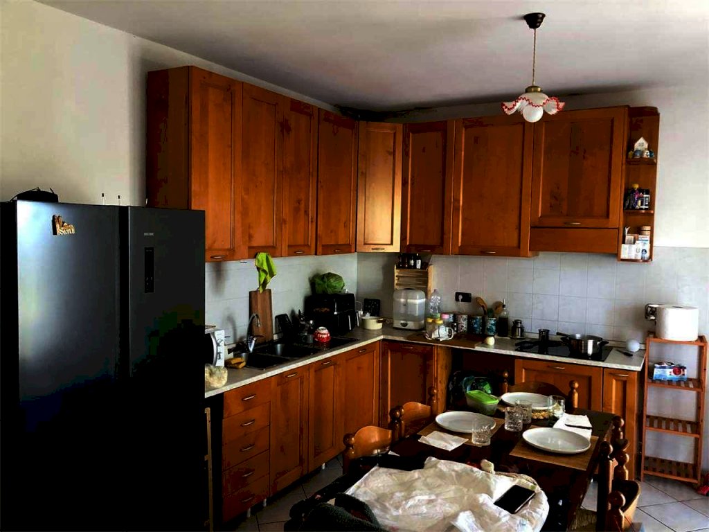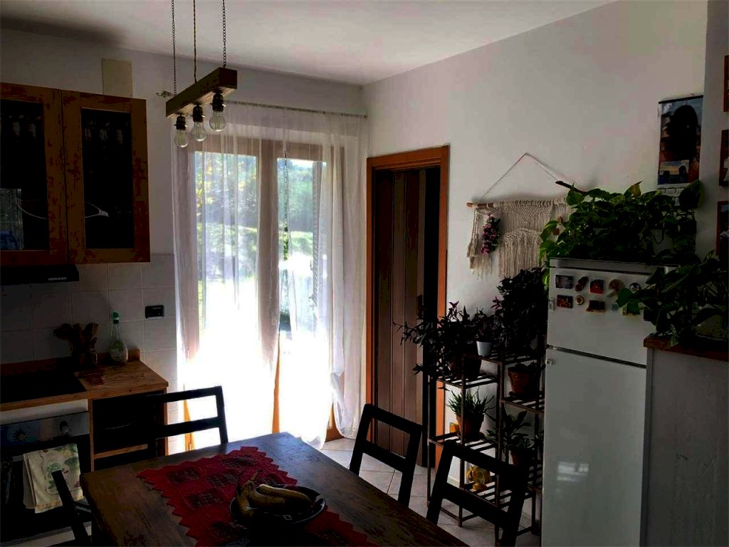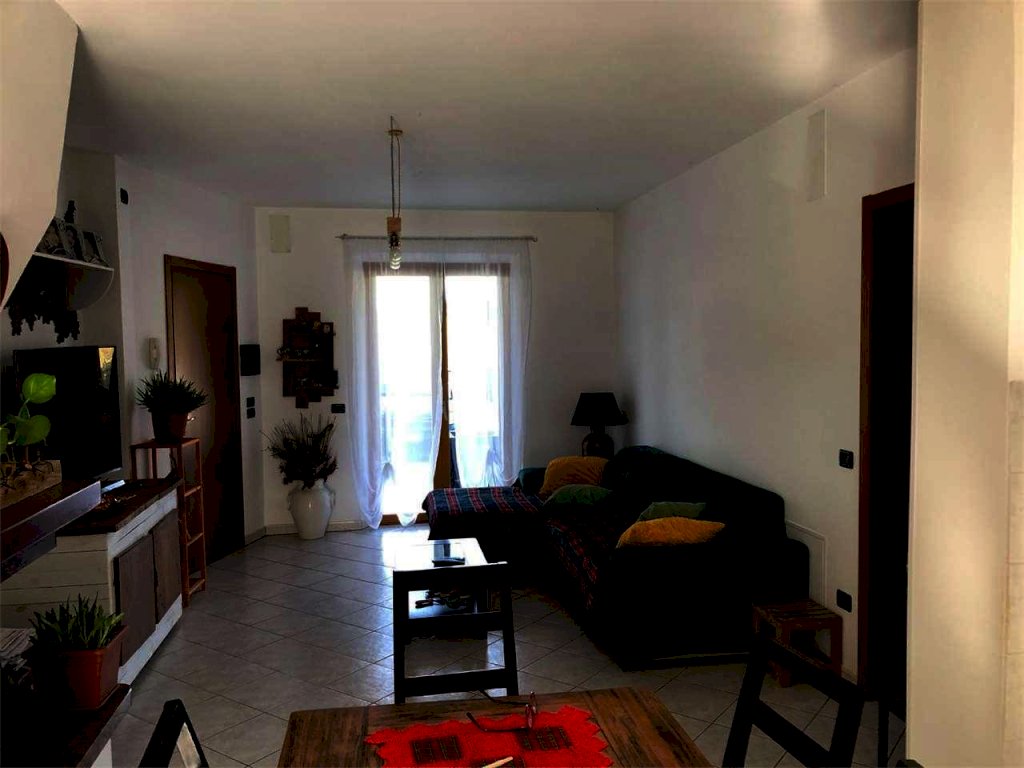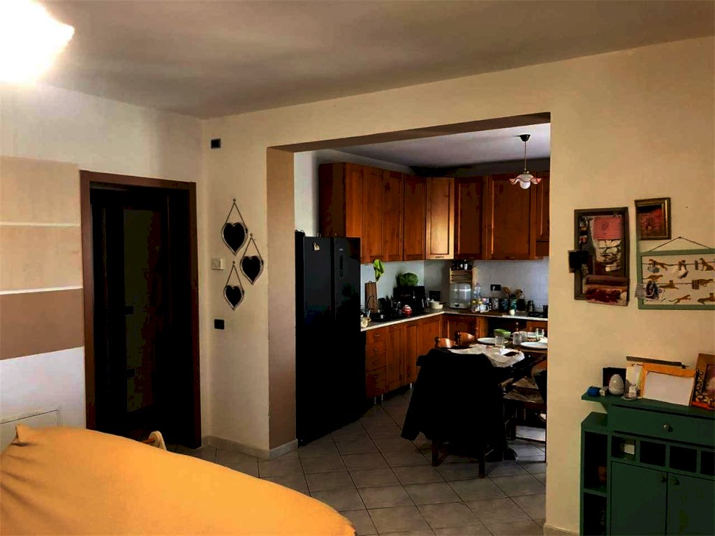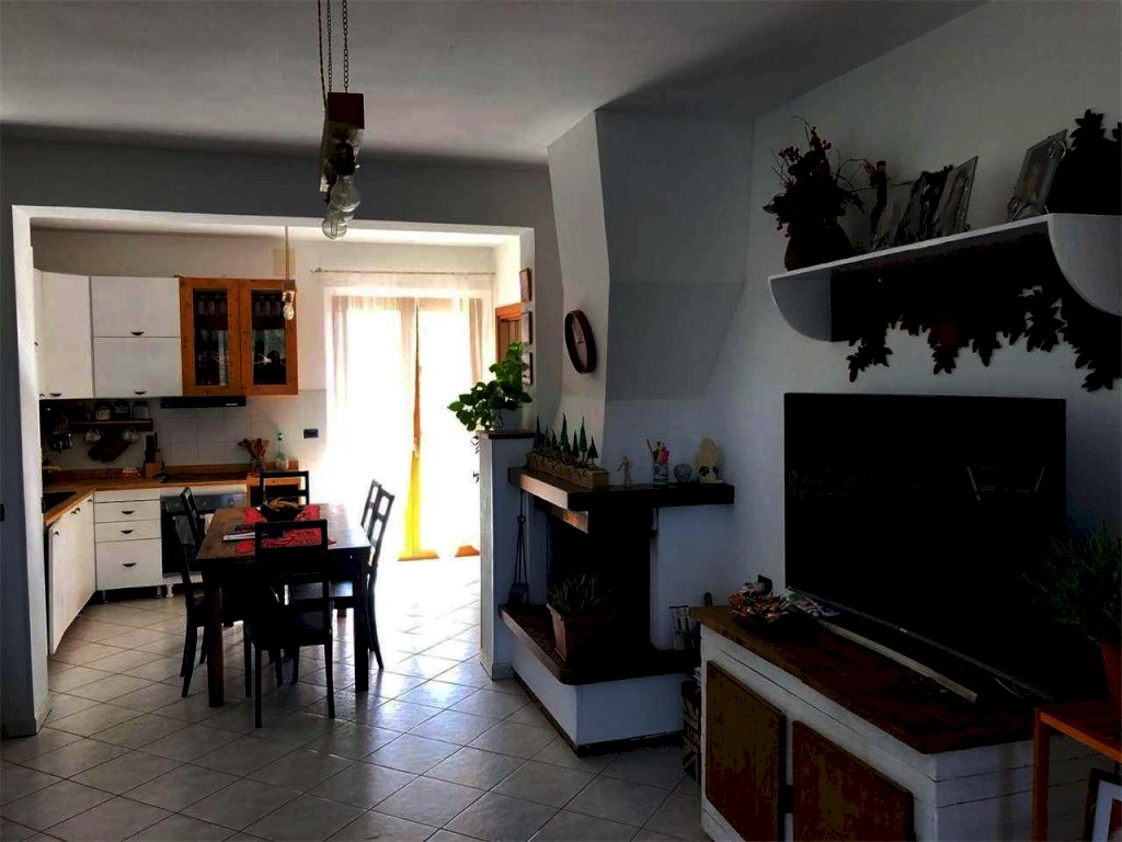 Il primo appartamento è composto da un soggiorno con camino e cucina a vista, una comoda dispensa, due camere da letto ed un bagno dotato di doccia e finestra.