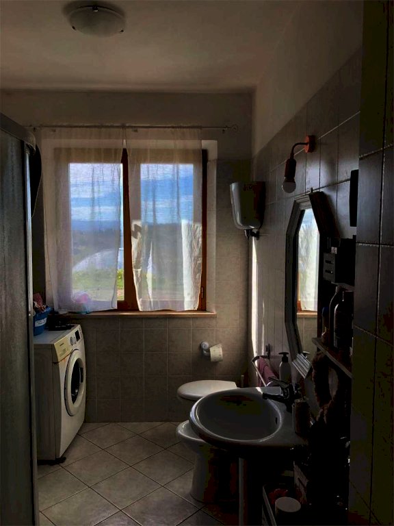 La proprietà dispone, al piano seminterrato, di due garage ed un magazzino con bagno pavimentati della superficie complessiva di 160 mq con un comodo accesso sia dalla rampa esterna sia dall'abitazione tramite una scala interna.