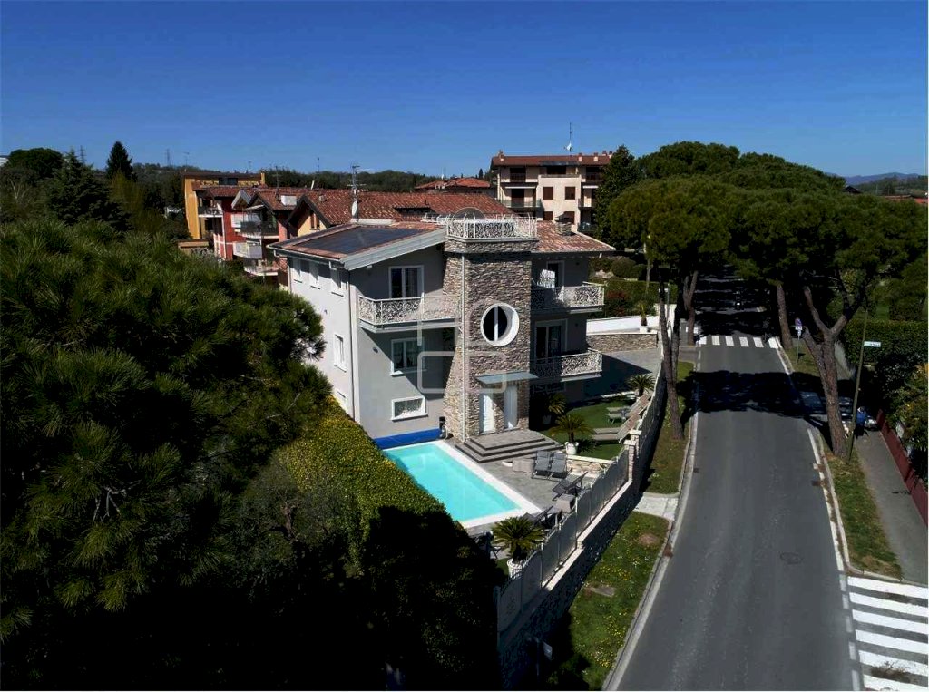 In posizione privilegiata, a soli 400 metri dal lago e dal centro di Desenzano del Garda, disponibile per la vendita prestigiosa villa singola di ampia metratura dotata di piscina riscaldata e visuali sul lago. Internamente la proprietà, sviluppata su tre livelli, vanta 9 camere da letto e 7 bagni. Al piano seminterrato: soggiorno con cucina, due camere matrimoniali, bagno e lavanderia. Al piano terra: soggiorno con affaccio sul balcone, cucina separata, camera matrimoniale, camera doppia, camera singola e due bagni. Al piano primo: quattro camere matrimoniali con bagno privato, due balconi e loggiato. Impianto fotovoltaico da 6 kw, pannelli solari, domotica e video sorveglianza. Possibilità di suddivisione in tre appartamenti indipendenti e di ricavare al piano seminterrato un box auto di generose metrature. Restiamo a disposizione per ulteriori informazioni e visite in loco.