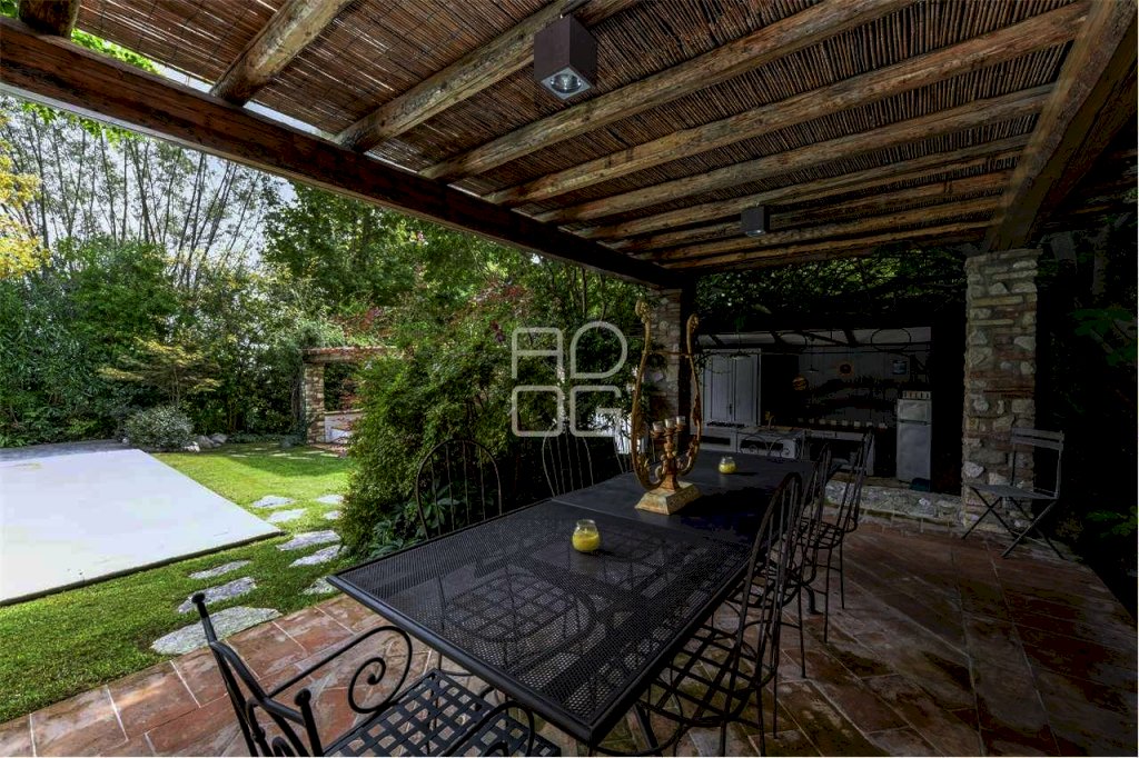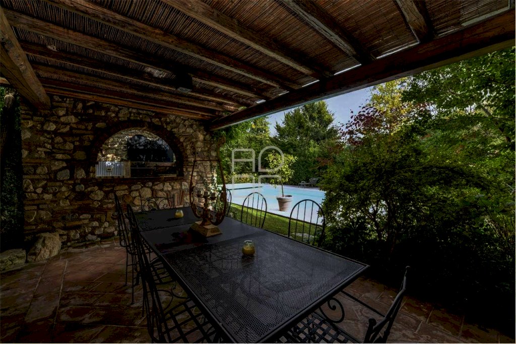 Alle porte del paese di Desenzano del Garda, inserita in affascinante e signorile contesto di Casale ristrutturato attorniato dal verde e dalla tranquillità, proponiamo importante ed esclusiva proprietà indipendente dotata di ingresso privato all'interno di questo contesto lussuoso. Percorrendo il viale di accesso esclusivo si arriva all'ingresso della proprietà dove ammirare la bellissima e curata area esterna privata dove al suo interno troviamo altresì due posti auto coperti ed una rimessa attrezzi separati dal giardino di proprietà esclusiva. All'interno dell'ampia area esclusiva troviamo una cucina esterna completa, una zona pranzo per 12 persone, una piscina privata esclusiva e una zona coperta con camino per poter soggiornare in tutta tranquillità all'aperto. L'ingresso della villa da piano terra conduce alla zona notte che dispone di tre grandi camere matrimoniali di cui una con bagno privato, completa il reparto notte un ulteriore bagno ed una zona lavanderia. Dalla bella scala in legno e ferro battuto si accede all'ampia zona living nella quale è stata concepita una zona pranzo, salotto con camino, una cucina in muratura, un bagno per gli ospiti ed una terrazza che accoglie un tavolo per 10 persone. Salendo nella scenografica torretta esclusiva troviamo piano un bagno con doccia ed uno studio con letto per gli ospiti. Dalle immagini potrete vedere le finiture, il carattere e lo charme dell'esclusiva abitazione ideale sia come casa primaria che come seconda casa per le vacanze. Restiamo a disposizione per ulteriori informazioni e sopralluoghi.