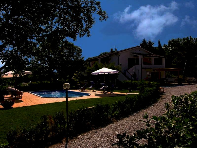 Piscina (9 x 4), giardino privato attrezzato di circa Mq. 800, zona parcheggio e ulteriori Mq. 4000 di terreno con oliveta.