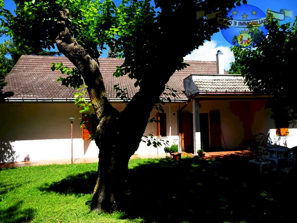 Alle porte del Paese, proponiamo in vendita esclusiva, villa singola di 300 mq circa completamente recintata, disposta su 2 livelli con parco (circa 3.000 mq con alberi alto fusto e piante da frutto), con accesso privato e porticato d'ingresso. La villa è composta al piano terra da spazioso salone, cucina con camino, 3 camere, 2 bagni, studio; al piano superiore, collegato internamente, sono presenti una zona giorno/disimpegno, 2 camere, bagno, terrazza , balcone e ripostiglio sottotetto. Completa la proprietà un comodo garage e cantina, l'immobile è in ottime condizioni generali.