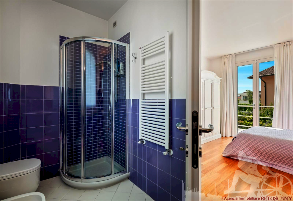 Villa singola con piccola piscina, di recente costruzione, distribuita su due piani fuori terra oltre alla mansarda, con giardino esclusivo circostante e posti auto interni alla proprietà. Abitazione di circa 210 mq oltre a circa 120 mq tra sottotetto e mansarda, lotto di circa 870 mq, distanza dal mare circa 750 metri. Al piano terra: ingresso, cucina a vista su grande sala pranzo, soggiorno dal quale si accede al portico coperto, camera matrimoniale, bagno, centrale termica e lavanderia. Al piano primo: camera matrimoniale con camera armadi e ampio bagno, camera matrimoniale con bagno privato. Al piano mansarda: due camere, bagno. Classe energetica C.