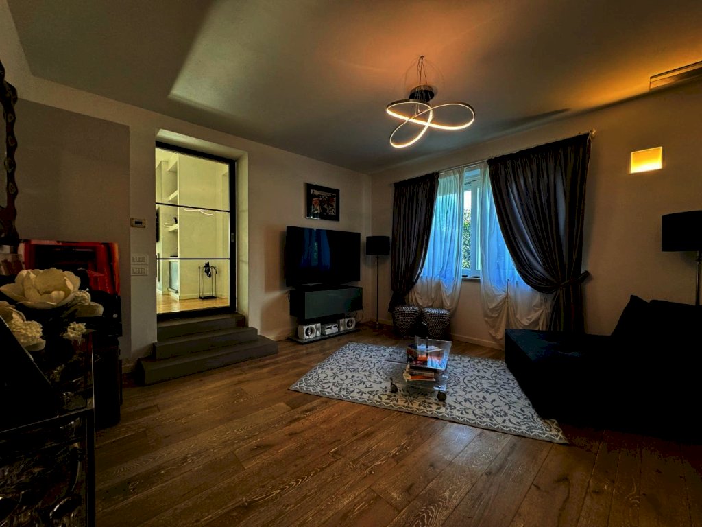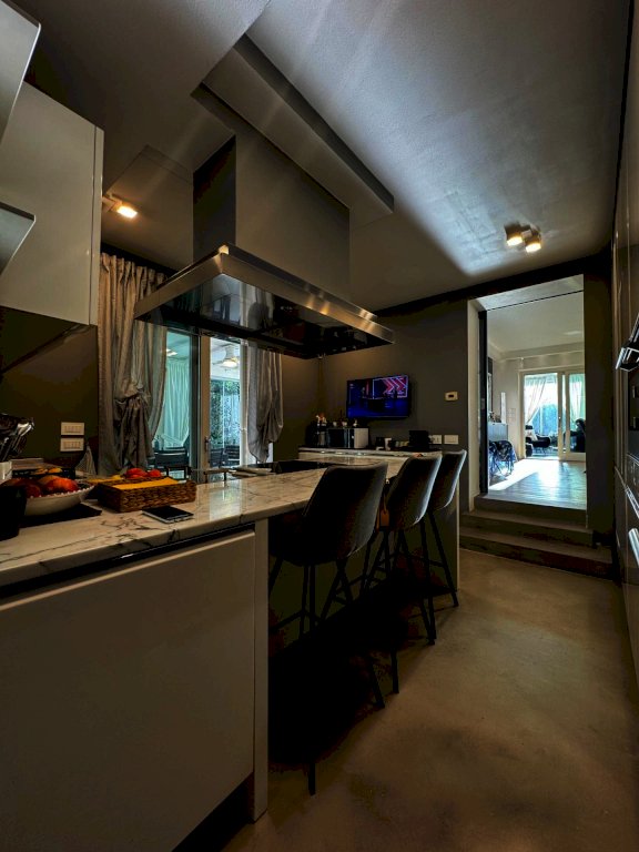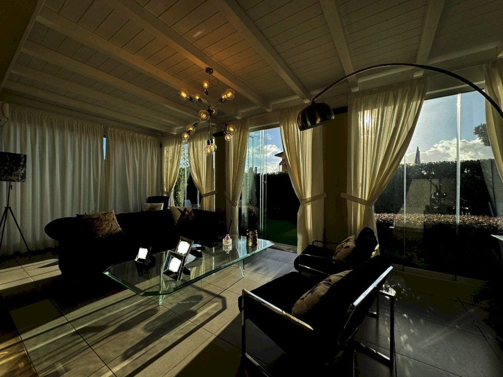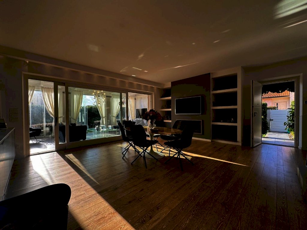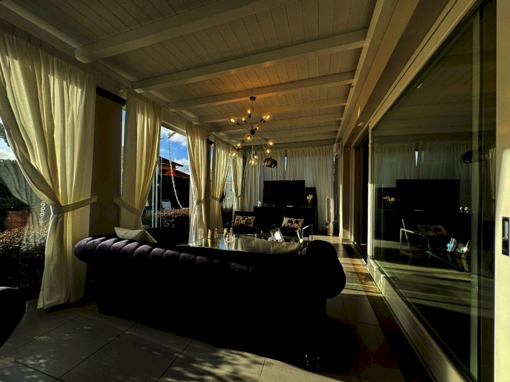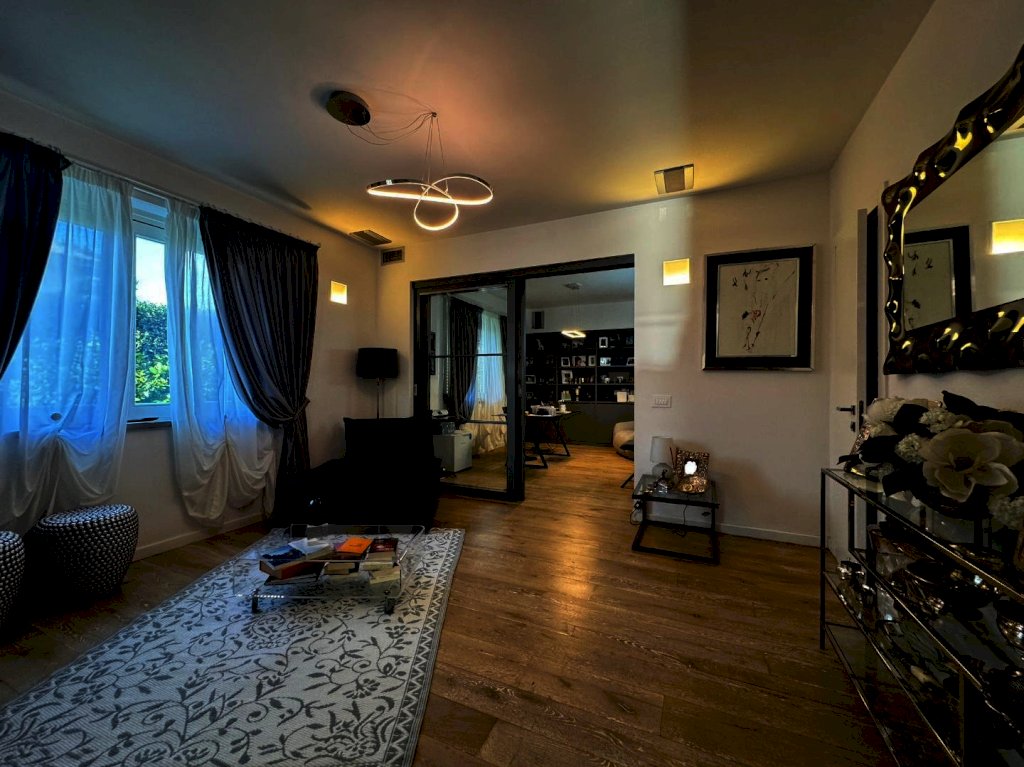 Al piano terra composta da ampio salone che affaccia sul giardino tramite una pompeiana, cucina su misura abitabile con pompeiana, camera di servizio con bagno, studio con bagno di servizio e locale lavanderia.