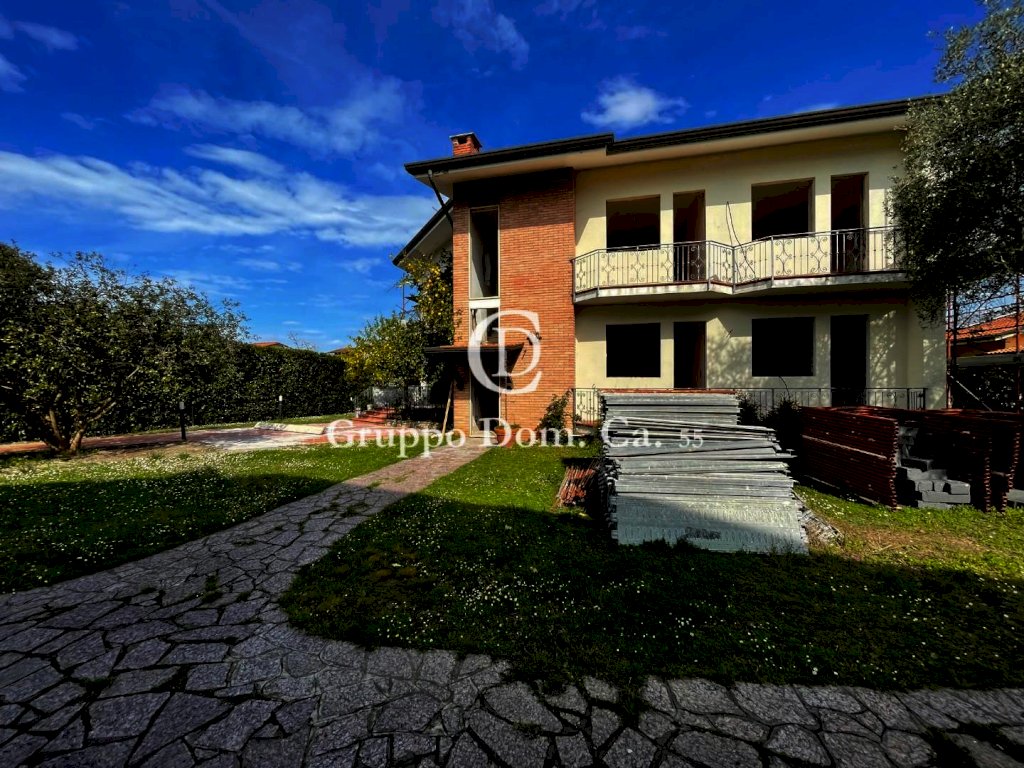 Vittoria Apuana - Forte dei Marmi - In zona residenziale e tranquilla, villa singola di 400 mq in fase di ristrutturazione con dependance, giardino di 1100 mq con possibilità di edificarvi la piscina, ingresso carrabile e pedonale. Sviluppata su due livelli, raggiungibili tramite scala interna e ascensore, più piano seminterrato. Al suo interno composta come segue: piano terra con ingresso, disimpegno, ampio e luminoso soggiorno, cucina abitabile, sala da pranzo con balcone, bagno di servizio, camera matrimoniale con balcone e bagno, ripostiglio e vano ascensore. Al piano primo la zona notte composta da camera padronale con bagno en-suite e doppia terrazza, due camere doppie con balcone, due camere matrimoniali con balcone e due bagni. Al piano seminterrato troviamo ampio vano utilizzabile come locale tecnico per la piscina. Dependance con soggiorno, cucina, camera e bagno. - Rif. VVA412