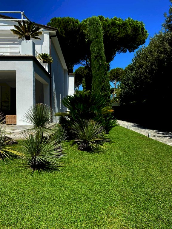 Forte Dei Marmi Villa di Lusso in vendita nella pineta di Roma Imperiale nella zona più esclusiva del Forte; La villa completamente ristrutturata pochi anni fa dagli attuali proprietari è impreziosita da un bellissimo giardino curato su 4 lati con piscina; La lussuosa proprietà che gode di un'ottima privacy e tranquillità si sviluppa su due piani fuori terra oltre a comoda cantina, dotata di ogni confort per essere vissuta tutto l'anno, sulla copertura è stato installato l'impianto fotovoltaico.