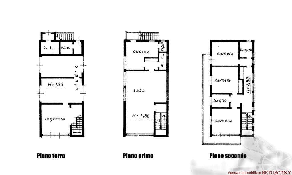 Villa singola disposta su tre livelli con giardino esclusivo circostante e piccola pertinenza. Abitazione di circa 180 mq oltre a circa 90 di locali di sgombero al piano terra e circa 40 mq, giardino di circa 680 mq, distanza dal mare circa 600 metri. Al piano terra: ingresso, due locali ad uso studio, w.c. con ingresso dall'esterno, centrale termico. Al piano primo: ampio soggiorno pranzo, cucina abitabile, bagno di servizio, ripostiglio. Al piano secondo: tre camere doppie/matrimoniali, due bagni, disimpegno, balcone.