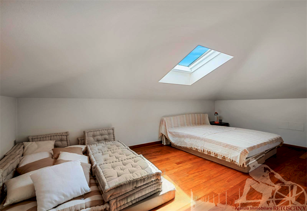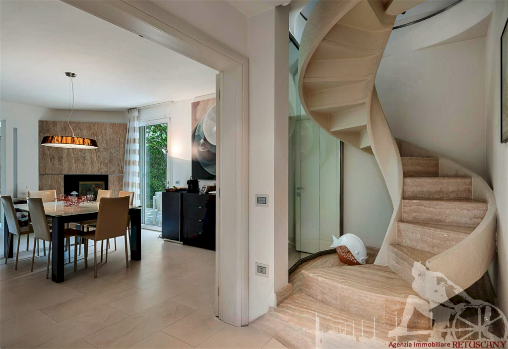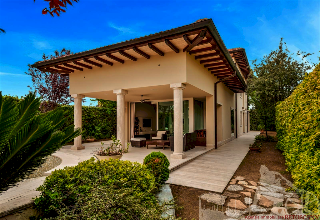 Villa singola con piccola piscina, di recente costruzione, distribuita su due piani fuori terra oltre alla mansarda, con giardino esclusivo circostante e posti auto interni alla proprietà. Abitazione di circa 210 mq oltre a circa 120 mq tra sottotetto e mansarda, lotto di circa 870 mq, distanza dal mare circa 750 metri. Al piano terra: ingresso, cucina a vista su grande sala pranzo, soggiorno dal quale si accede al portico coperto, camera matrimoniale, bagno, centrale termica e lavanderia. Al piano primo: camera matrimoniale con camera armadi e ampio bagno, camera matrimoniale con bagno privato. Al piano mansarda: due camere, bagno. Classe energetica C.