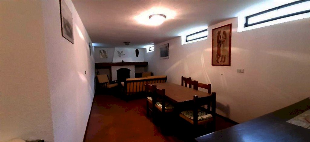 al Piano Seminterrato: ampia taverna con camino, 2 ripostigli.