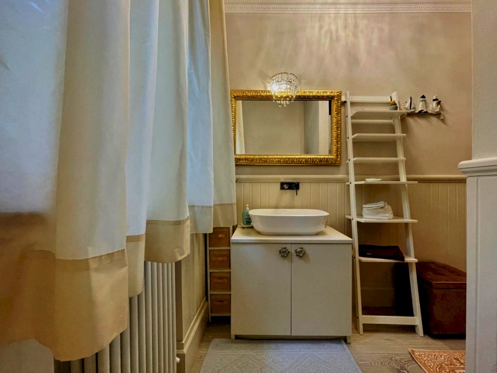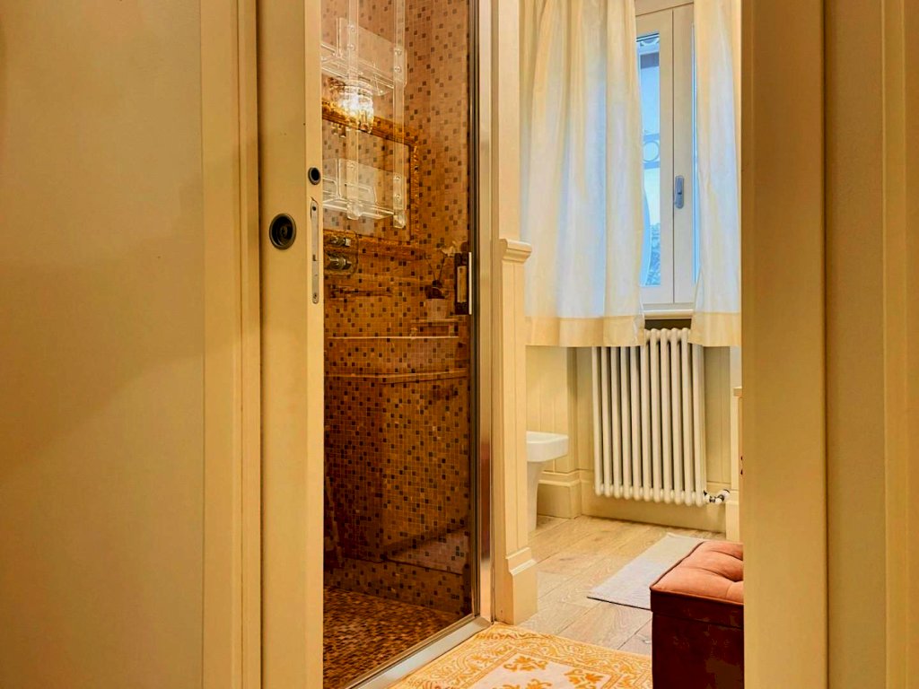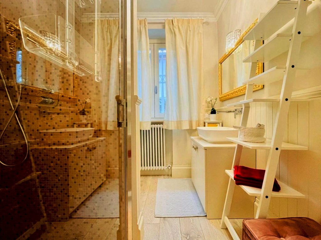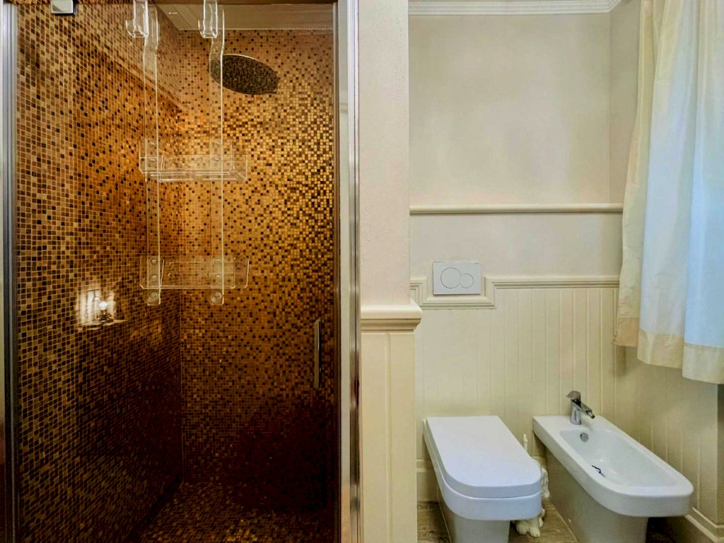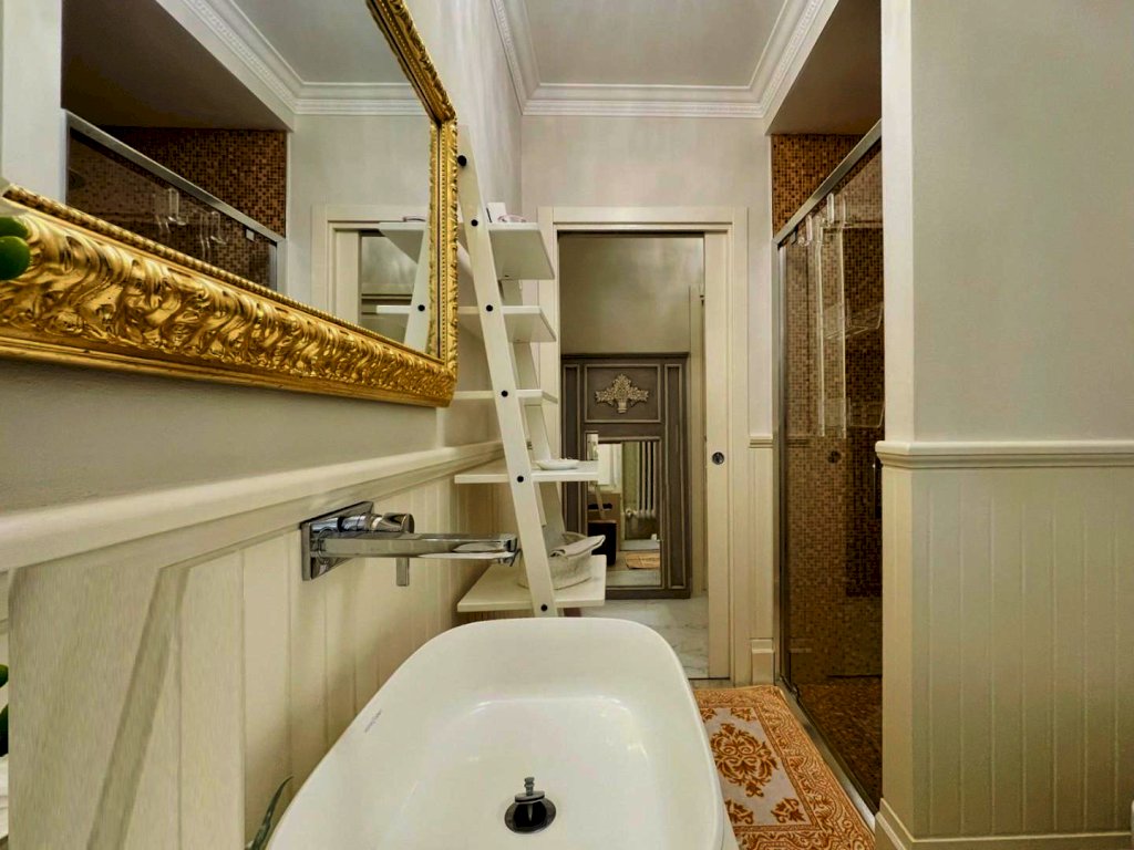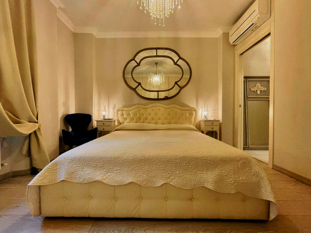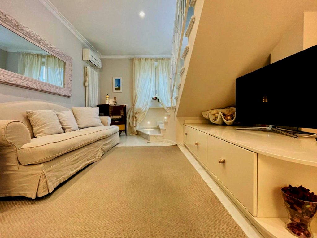 L'ingresso avviene nella zona giorno, Questo generoso ambiente, arredato pregevolmente e studiato nei dettagli fonde perfettamente il convivio con l'eleganza, così come il resto dell'abitazione.
