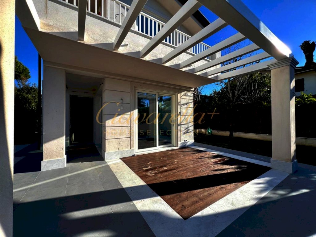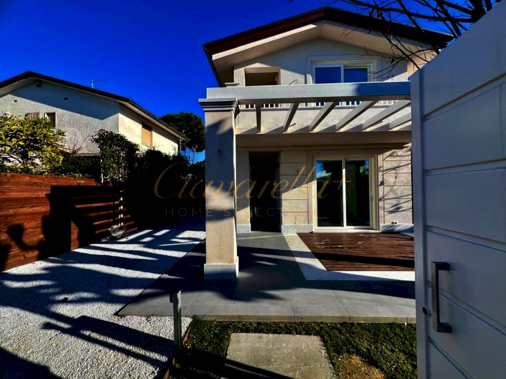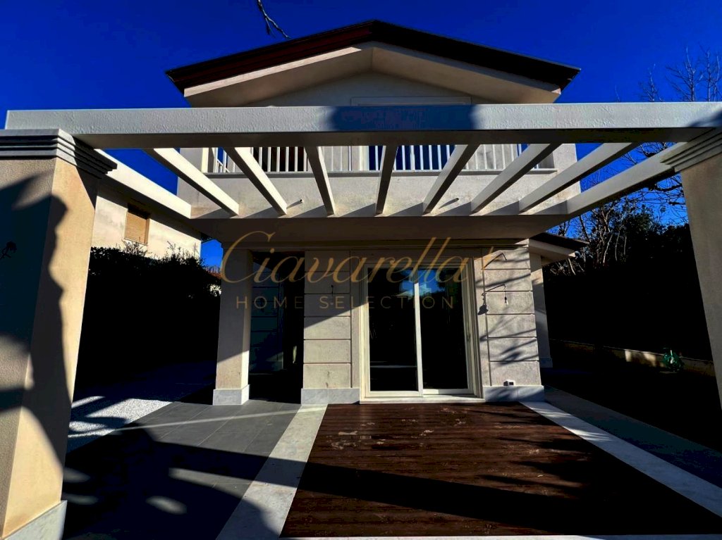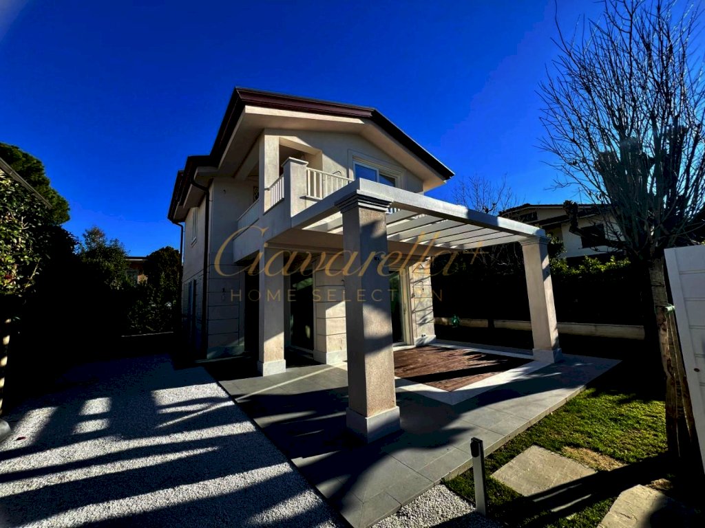 Forte dei Marmi alle spalle del centro e circa 1 km dal mare. Villa singola di nuova costruzione di 152 mq su due piani fuori terra su lotto di 315 mq. Composta: al piano terra grande soggiorno con vetrate vista giardino e accesso nella pompeiana con salotto esterno e zona pranzo, cucina, lavanderia, camera matrimoniale con bagno. Al primo piano tre camere matrimoniali con bagni privati e terrazza. Villa dotata di tutti comfort: aria condizionata, allarme, domotica, riscaldamento a pavimento, impianto fotovoltaico.