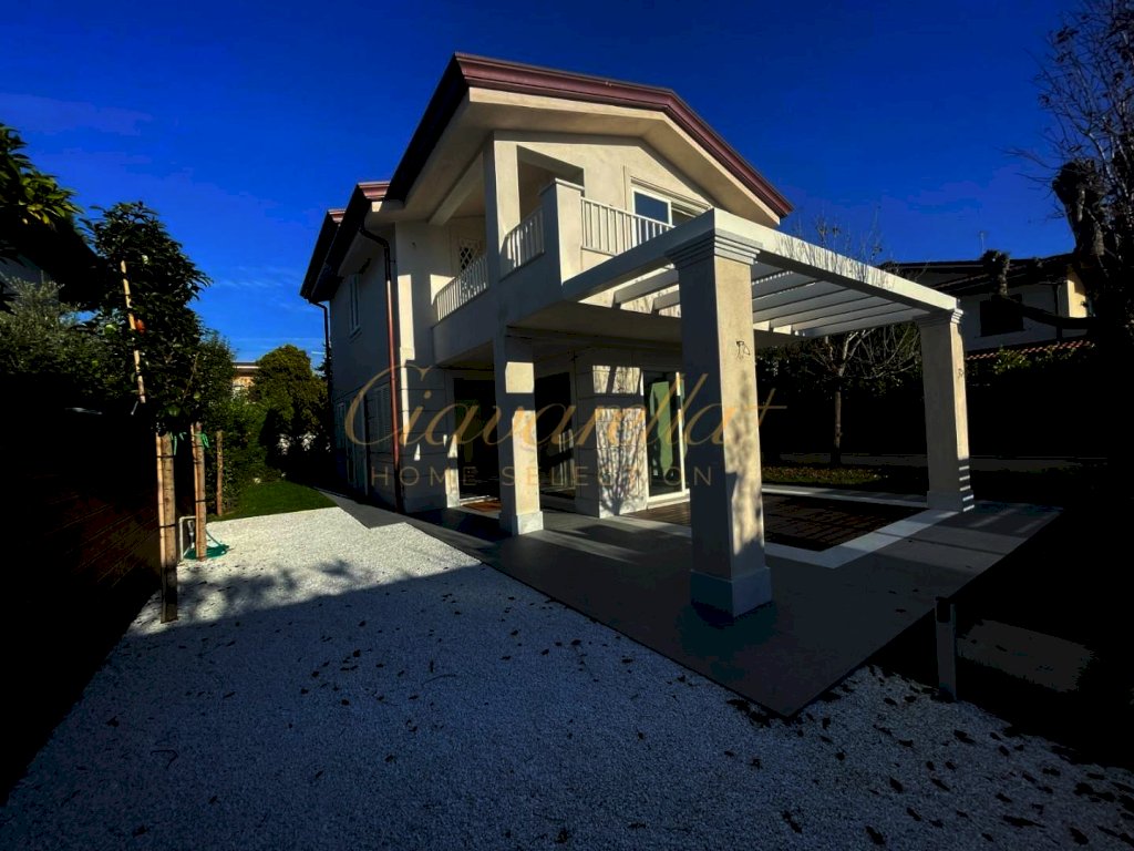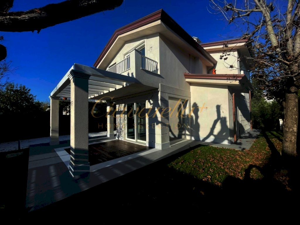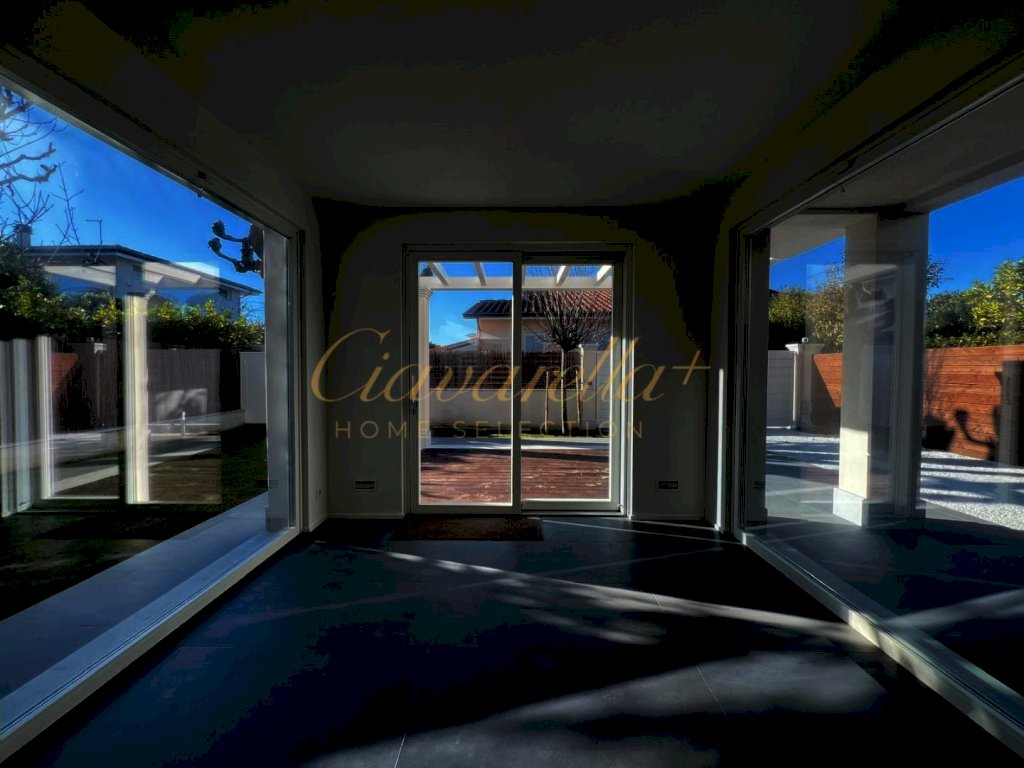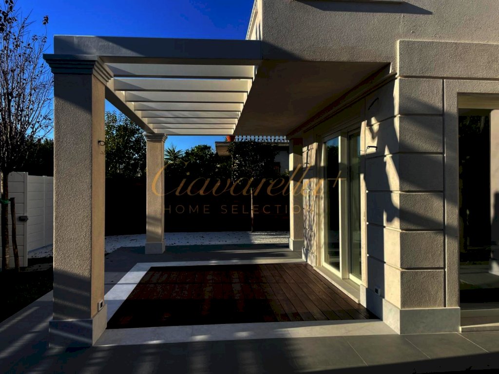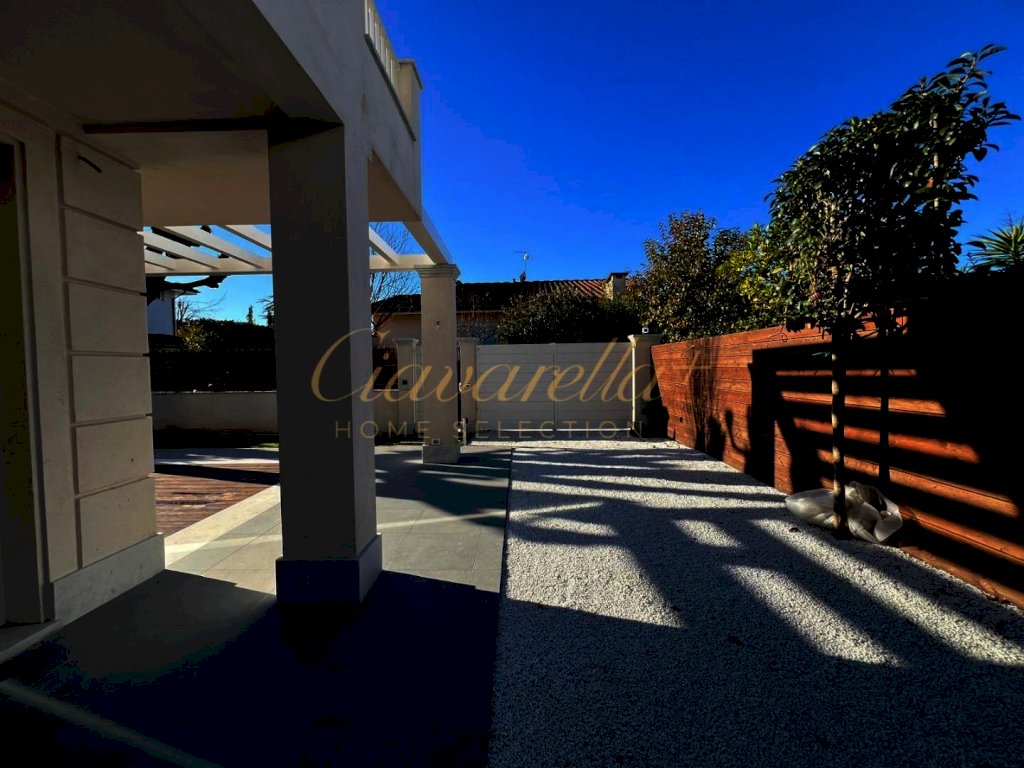 Forte dei Marmi alle spalle del centro e circa 1 km dal mare. Villa singola di nuova costruzione di 152 mq su due piani fuori terra su lotto di 315 mq. Composta: al piano terra grande soggiorno con vetrate vista giardino e accesso nella pompeiana con salotto esterno e zona pranzo, cucina, lavanderia, camera matrimoniale con bagno. Al primo piano tre camere matrimoniali con bagni privati e terrazza. Villa dotata di tutti comfort: aria condizionata, allarme, domotica, riscaldamento a pavimento, impianto fotovoltaico.