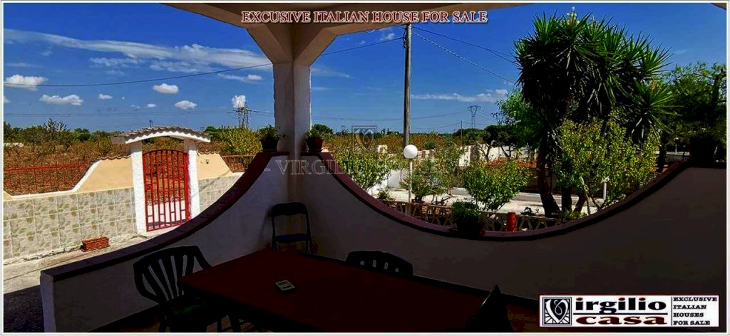 Ref: 390 VIRGILIO CASA REAL ESTATE PROPONE IN VENDITA A FRANCAVILLA FONTANA: Distante appena 6 km dal centro del paese,deliziosa villa con garage rivestita in pietra per un totale di 110 mq. Attraverso una bellissima veranda panoramica si accede all'abitazione composta da una grande cucina con camino, disimpegno con tre camere da letto e bagno, e ad un garage di 30mq,che dispone di un entrata carrabile , ed un ulteriore uscita su una veranda posteriore attrezzata di locale forno e bagnetto . La villa possiede di 3000mq di terreno completamente recintato, con 30 alberi d'ulivo, varie tipologie di alberi da frutto e riserva idrica di 600 quintali.