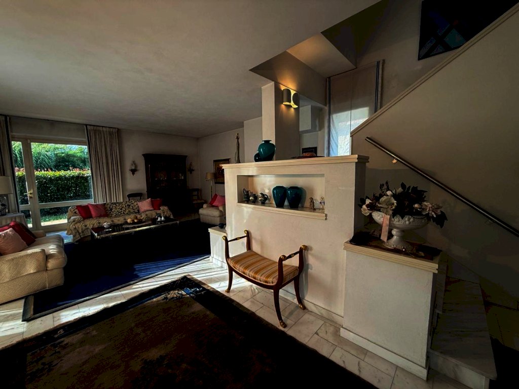 Fucecchio, in elegante zona residenziale, è proposta la vendita di una pregevole villa libera su quattro lati circondata da un gradevole giardino. La residenza è così composta: al piano terra ingresso su ampia zona living arricchita da un camino e da grandi vetrate all'americana ed uscita verso il giardino, studio, sala da pranzo anch'essa con uscita verso l'esterno, cucina, bagno; dal salone si apre una maestosa scala a giorno che conduce al al primo piano, dove si sviluppano una master bedroom con bagno e guardaroba esclusivi, una camera matrimoniale, una camera doppia e un bagno. La mansarda è un open space molto luminoso che puo' costituire una seconda zona living, uno studio o una quarta camera da letto. Nel piano sottostante la zona giorno, si trovano una grande cucina rustica con camino ed angolo relax con tre uscite verso il giardino, un bagno, una dispensa, una stanza pluriuso, vano caldaia e garage. Il giardino è distribuito sui quattro lati della residenza. I pavimenti sono in marmo di carrara, parquet e cotto toscano, le finiture sono elitarie. Pannelli fotovoltaici, sistema antifurto, vetri antisfondamento. Le condizioni sono ottime. Cl.D ep 176,42. Euro 520.000 Rif.1313