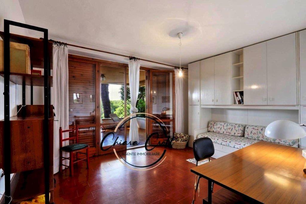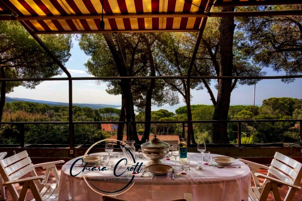 Questa proprietà, un gioiello che riflette l'architettura degli anni '70, si fonde in modo naturale con l'ambiente circostante. Non è solo una casa, ma un'esperienza sensoriale. Dalle ampie finestre, la vista si apre su un panorama mozzafiato, dove il blu intenso del mare si unisce al verde lussureggiante della pineta. È un quadro vivente che cambia con le ore, illuminato dal sole caldo della Toscana e rinfrescato dalla brezza marina.