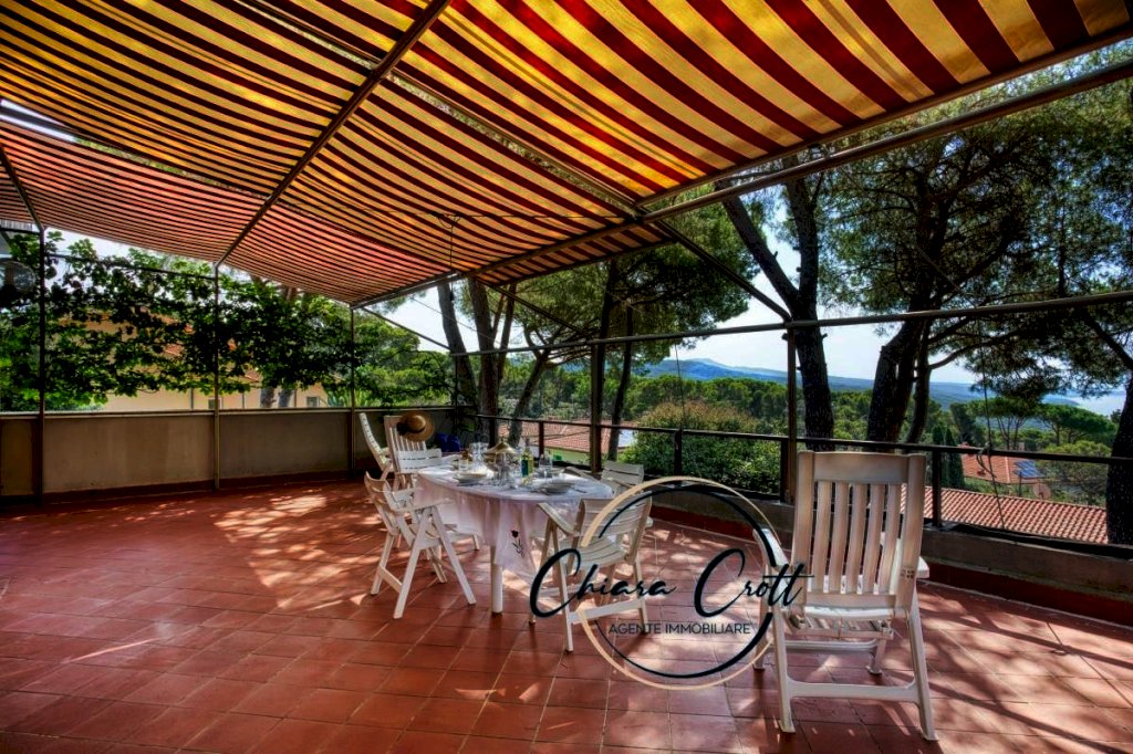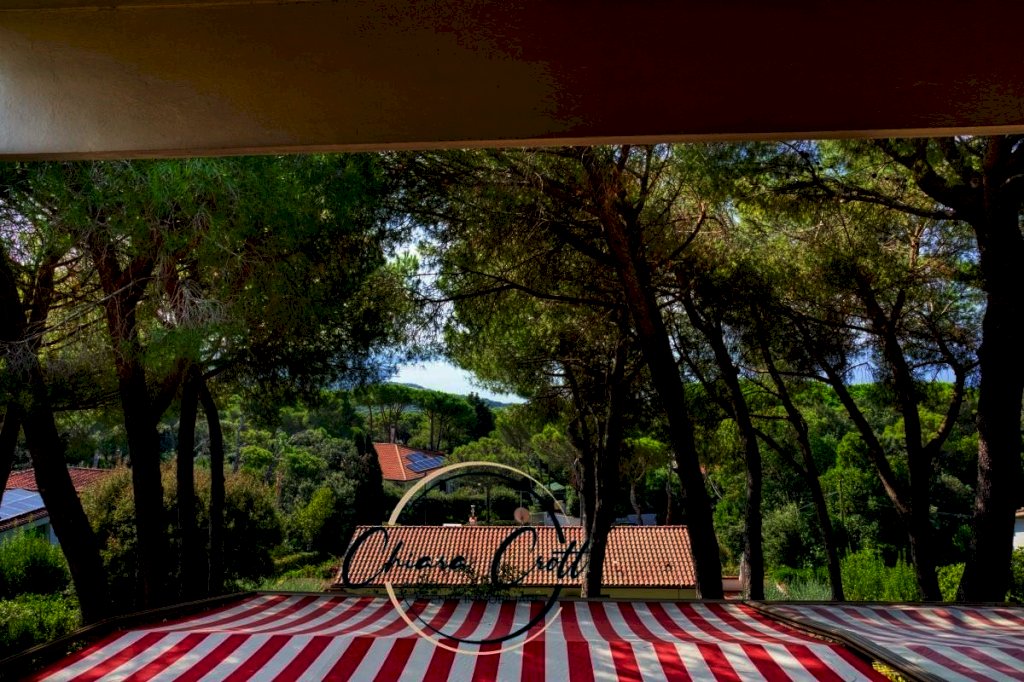 Questa proprietà, un gioiello che riflette l'architettura degli anni '70, si fonde in modo naturale con l'ambiente circostante. Non è solo una casa, ma un'esperienza sensoriale. Dalle ampie finestre, la vista si apre su un panorama mozzafiato, dove il blu intenso del mare si unisce al verde lussureggiante della pineta. È un quadro vivente che cambia con le ore, illuminato dal sole caldo della Toscana e rinfrescato dalla brezza marina.