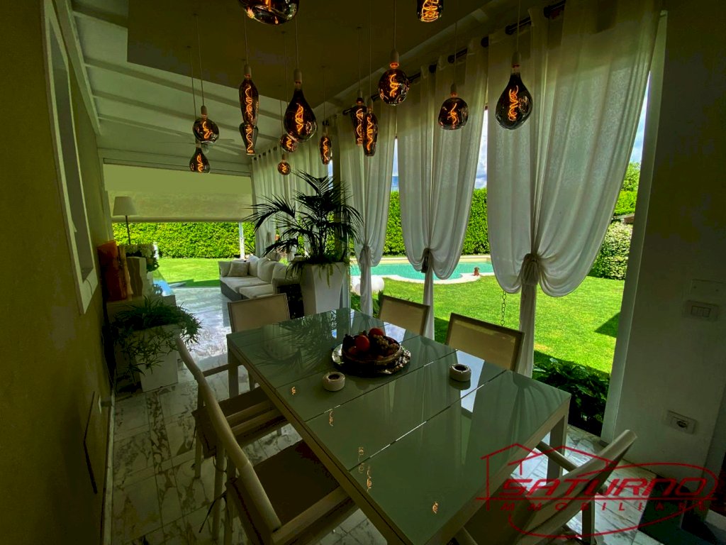 La villa principale si sviluppa per 115 mq tutti sul piano terra rialzato e si compone di ingresso, ampio soggiorno/pranzo con cucina open space con camino ed accesso al bellissimo porticato veranda che si affaccia sul giardino e sulla piscina, poi abbiamo un bagno, la camera princiapale,ripostiglio, ritornando all'ingresso troviamo alla sinistra la camera matrimoniale con bagno en suite.Aria condizionata canalizzata, termoautonomo a termosifoni a metano, infissi pvc con doppi vetri,CAPPOTTO TERMICO.