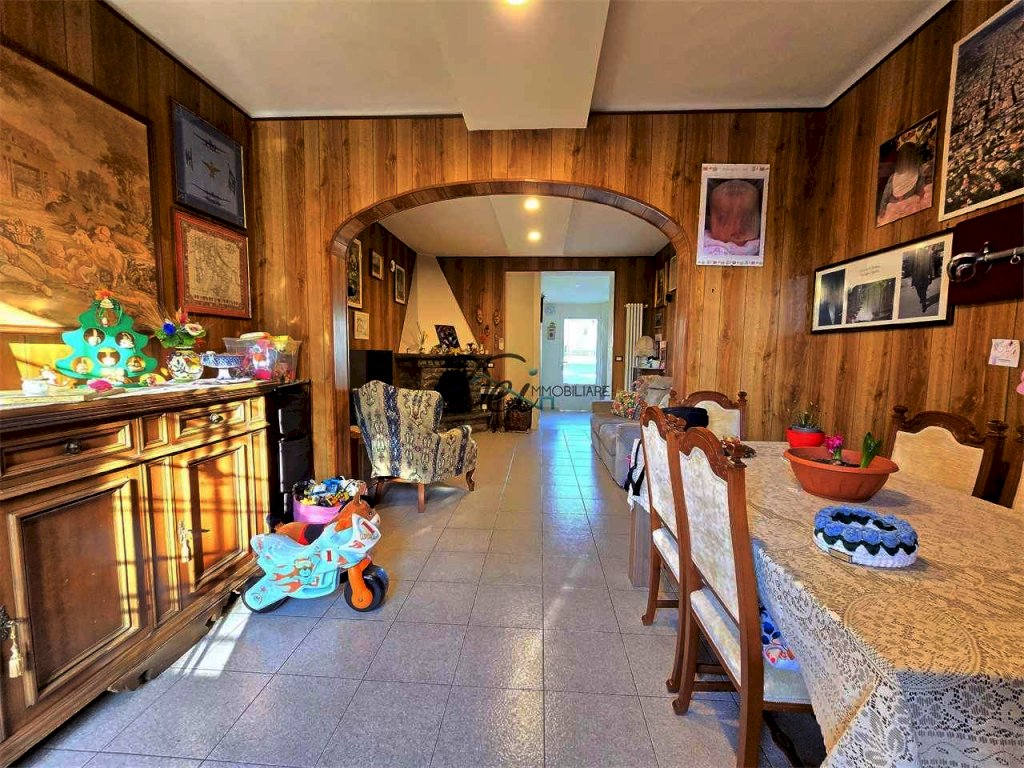 Al piano terra troviamo un ampio ingresso, un grande salone con camino, una sala da pranzo facilmente utilizzabile anche come studio o camera al piano, una cucina abitabile con accesso diretto al giardino e un bagno con doccia.