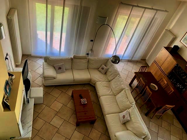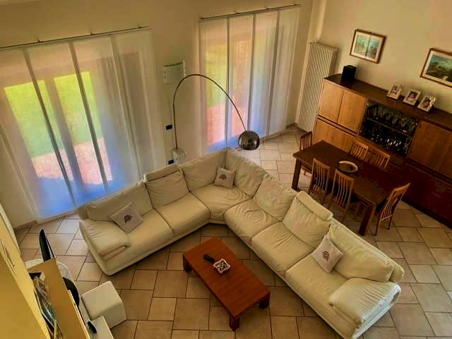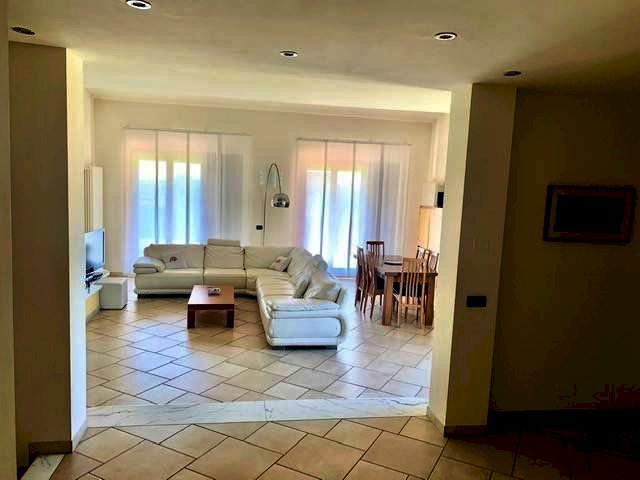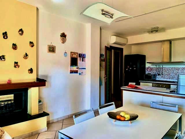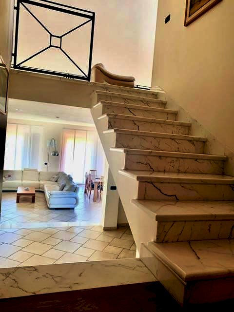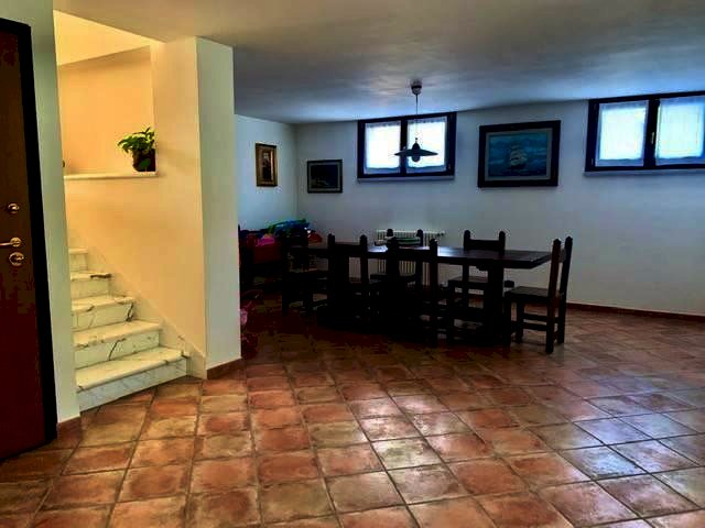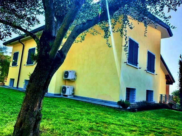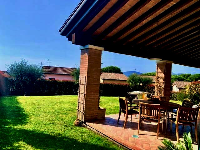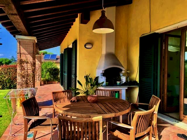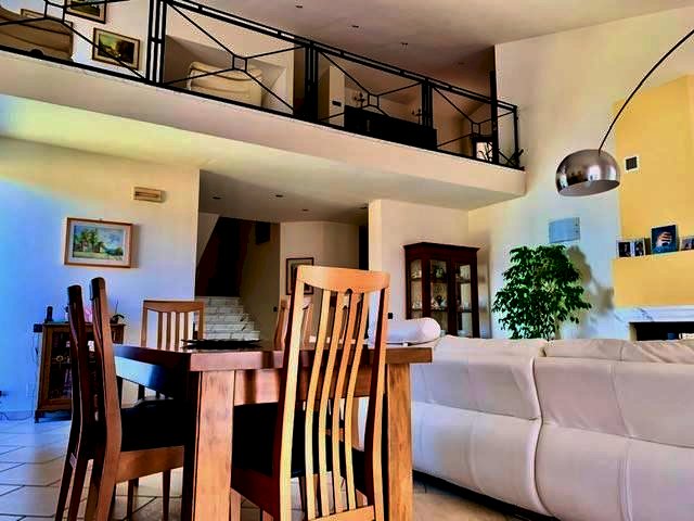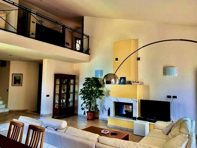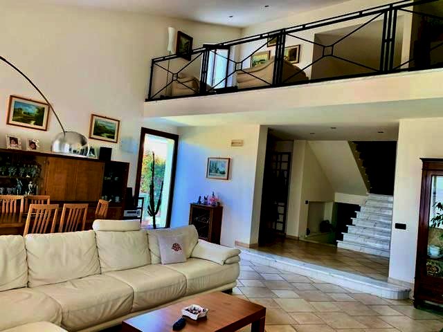 Luni, in zona tranquilla splendida villa di circa 400mq costruita nel 2003 e composta da: al pian o terra in gresso, cucina abitabile con camino, ampio salone con camino, bagno e ripostiglio. nel mezzanino tre camere da letto ognuna con la sua cabina armadi privata, l'aria condizionata e doppi servizi. Ampio studio soppalcato con bella terrazza. Taverna collegata all'immobile e con accesso indipendente con zotta cottura e salone. Ampio garage collegato all'abitazione. Zona lavnderia e cantina. All'esterno grande giardino di 600mq con impianto di irrigazione e bel porticato pranzabile. Immobile con finiture di lusso e vista mare. Possibilità di accordarsi con la proprietà per la costruzione di una piscina interrata.