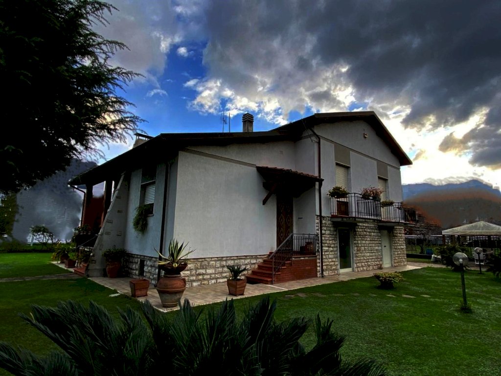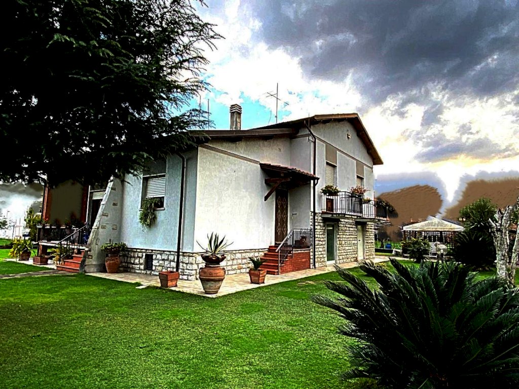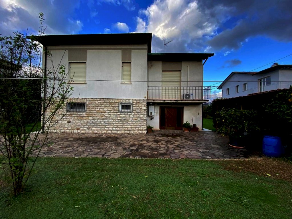 Nelle immediate vicinanze di Viale Roma comoda ai servizi ma allo stesso tempo in posizione riservata, proponiamo la vendita in esclusiva di questa bella villa su lotto di giardino di mq. 1.000. La casa si presenta all'esterno piacevole, sviluppata su piani sfalsati e perfettamente in ordine, subito abitabile. Internamente si compone nella zona giorno di ingresso, ampio soggiorno, cucina abitabile e veranda vivibile. Si accede alla zona notte con alcuni ampi gradini e troviamo tre camere matrimoniali, un bagno ed un balcone. A piano terreno due locali con camino, altro bagno e ampio vano magazzino.