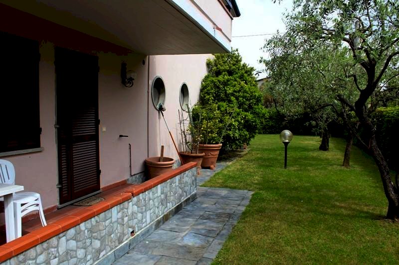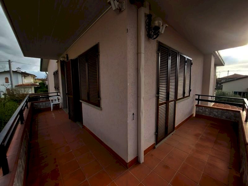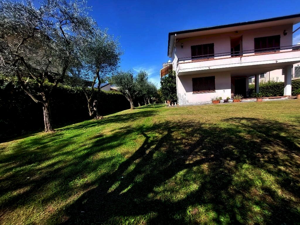 MARINA DI MASSA ALLE SPALLE DEL CENTRO, A CIRCA 800 METRI DAL MARE VENDESI VILLA SINGOLA DI CIRCA 270 MQ. ATTUALMENTE FORMATA DA DUE APPARTAMENTI INDIPENDENTI COSI COMPOSTI; PIANO TERRA: INGRESSO, AMPIA ZONA GIORNO CON CUCINA A VISTA CON AFFACCIO SUL GIARDINO, DUE CAMERE MATRIMONIALI, BAGNO CON VASCA, TAVERNA DI CIRCA 6O MQ. COLLEGATA DA SCALA INTERNA, AMPIO LOGGIATO COPERTO. PIANO PRIMO CON INGRESSO INDIPENDNTE TRAMITE SCALA INTERNA AMPIA ZONA GIORNO CON CAMINO E CUCINA A VISTA CON AFFACCIO SU UN'AMPIA TERRAZZA PRANZABILE E TERRAZZO ANGOLARE, DISIMPEGNO, CAMERA MATRIMONIALE CON BAGNO PRIVATO CON DOCCIA, DUE CAMERE MATRIMONIALI, BAGNO CON DOCCIA, RIPOSTIGLIO. IMPIANTO DI RISCALADAMENTO/RAFFRESCAMENTO CANALIZZATO. LOCALE LAVANDERIA AL PIANO TERRA CON DOCCIA, GARAGE DOPPIO CON FORNO A LEGNA E BARBECUE, E VARI POSTI AUTO. LA VILLA E DOTATA DI IMPIANTO FOTOVOLTAICO NUOVO, IMPIANTO TERMICO SOLARE PER LA PRODUZIONE ACQUA CALDA, IMPIANTO ANTIFURTO, IRRIGAZIONE GIARDINO AUTOMATICA E ROBOT TAGLIAERBA. IDEALE PER DUE NUCLEI FAMILIARI.