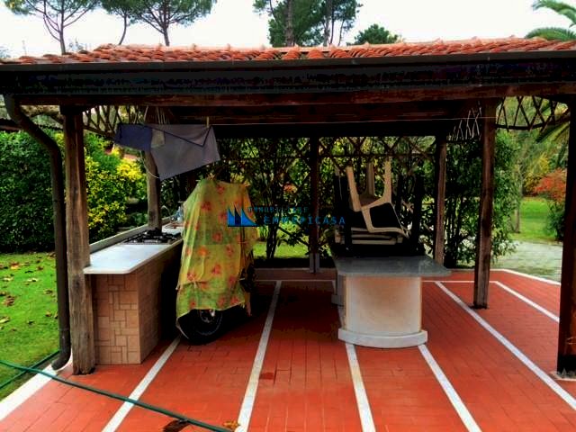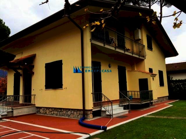 Poveromo. A soli 800 metri si vende in esclusiva villa singola sviluppata su due piani fuori terra con ampio giardino di pertinenza di circa 2000 mq. Sopraelevata di recente si compone di due appartamenti anche se unica unita' immobiliare. Grande appartamento di 140 mq al piano terra ristrutturato completamente (foto in allegato precedenti alla ristrutturazione) composto da ingresso, soggiorno con angolo cottura, due bagni e quattro camere matrimoniali; Appartamento mansardato al piano primo accessibile da bellissima scala in marmo composto da ingresso, angolo cottura/soggiorno, due camere matrimoniali e due bagni. Gazebo per pranzare all'aperto, posti auto interni e casetta di 30 mq in legno. Classe energetica F – IPE 174,99 kwh/mq anno. Rich. € 1.100.000 - Rif. H484