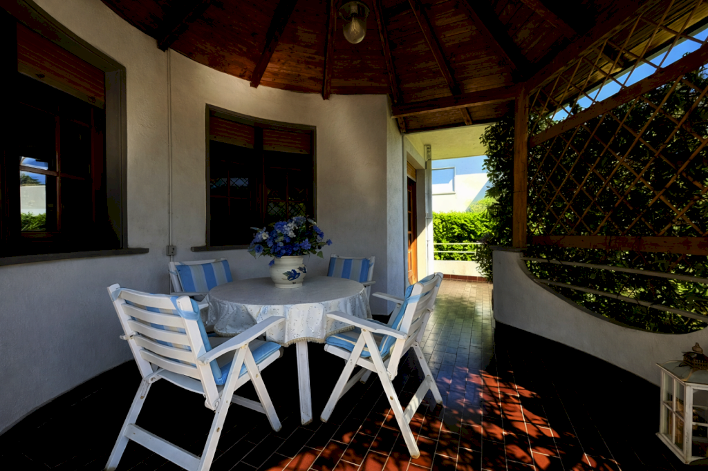 Ronchi 700/800m dal mareVilla singola zona. Su tre livelli. L'abitazione presenta ampi spazi interni ed un design moderno. Al piano giorno si trova un ingresso che conduce ad un salone doppio caratterizzato da una rientranza semicircolare, al centro della quale è presente una caratteristica veranda ideale per poter pranzare all'aperto. Dal soggiorno, dove è presente anche il camino, si passa alla cucina abitabile dotata anch'essa di terrazza pranzabile. Al piano giorno si trova inoltre una cameretta/studio ed un bagno.
