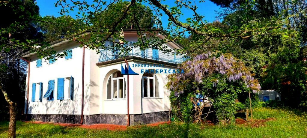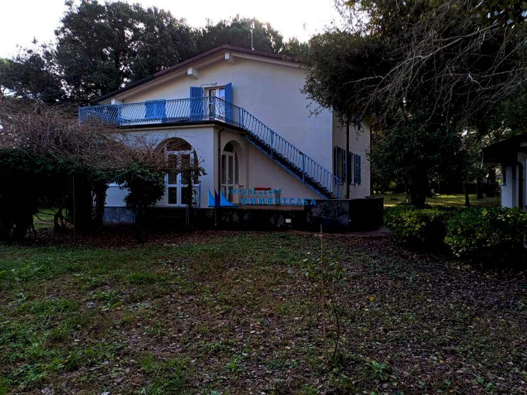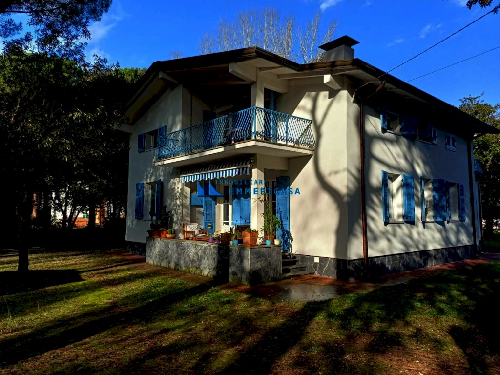 Poveromo. A soli 100 metri dal mare, immersa in un ampio parco di circa 3.500 mq, vendiamo villa completamente rinnovata composta da due appartamenti di ampia metratura e da piccolo fabbricato ad uso magazzino posto a poca distanza dalla stessa. L'appartamento a piano terra si compone di ingresso, cucina, soggiorno, tre camere matrimoniali, bagno, ripostiglio, veranda chiusa e coperta e loggia esterna per pranzi all'aperto accessibile dal soggiorno. L'appartamento a piano primo si compone di ingresso, cucina, soggiorno, tre camere matrimoniali, due bagni, ampia terrazza lato monti e loggia esterna per pranzi all'aperto accessibile dal soggiorno. Il piccolo fabbricato si compone di ampio locale uso deposito attrezzi, ripostiglio, zona motori e piccola loggia. Diversi posti auto interni alla proprietà. Doppio accesso carrabile. L’ immobile è stato oggetto di importanti interventi di ristrutturazione sulle parti esterne: rifacimento del tetto, sostituzione degli infissi, realizzazione del cappotto termico, installazione di pannelli solari e sostituzione delle caldaie. Gli ambienti interni necessitano invece di interventi di riordino e ammodernamento. Occasione unica!!!