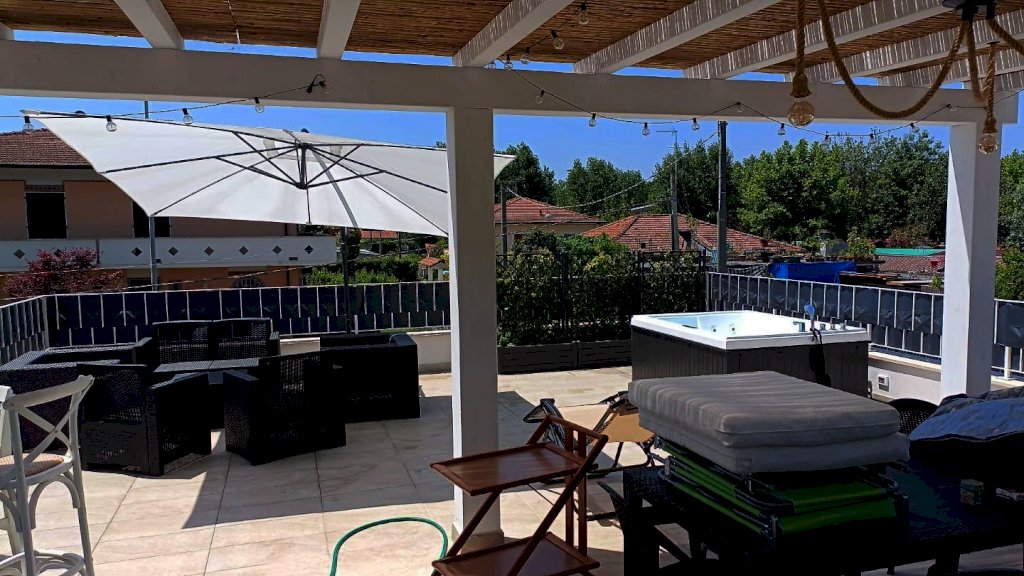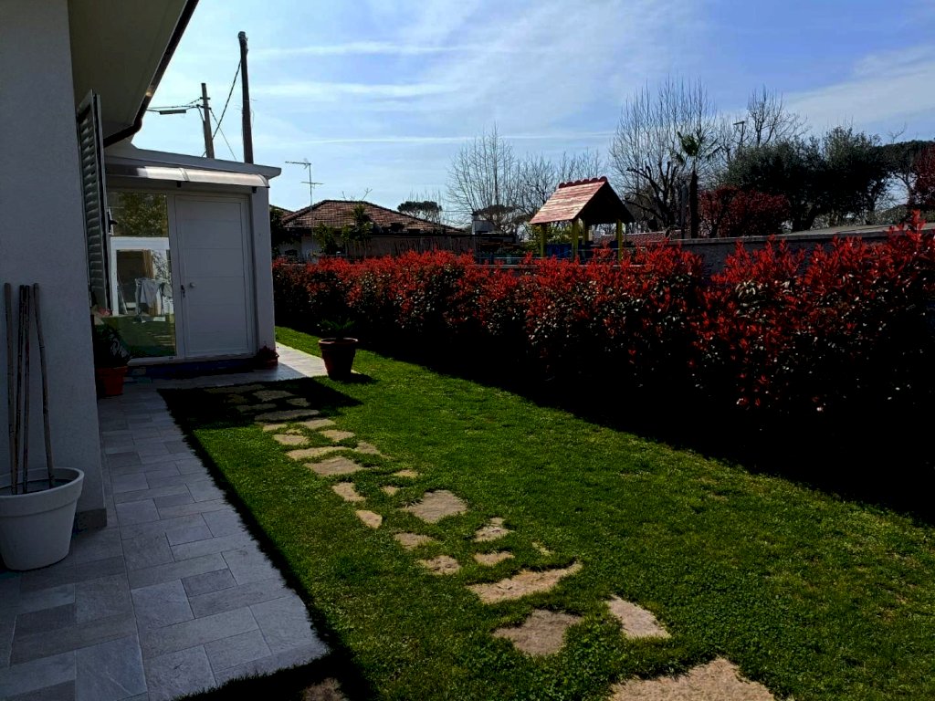 MARINA DI MASSA ZONA RICORTOLA/CASONE VENDESI VILLA SPLENDIDA SINGOLA DI RECENTISSIMA COSTRUZIONE DIPOSTA SU UN UNICO PIANO COMPOSTA DA SOGGIORNO CON CUCINA A VISTA, VERANDA COPERTA E RISCALDATA CON FUNZIONE DI SALA PRANZO, DISIMPEGNO, CAMERA MATRIMONIALE CON BAGNO PRIVATO CON DOCCIA E FINESTRA E CABINA ARMADI, CAMERA SINGOLA, BAGNO CON DOCCIA E FINESTRA. TERRAZZA SOVRASTANTE CON ACCESSO ESTERNO DOTATA DI LOGGIATO, CUCINA DA ESTERNO E VASCA IDROMASSAGGIO 6 POSTI. GIARDINO E POSTI AUTO COPERTI. LA VILLA E RIFINA IN MANIERA IMPECCABILE E DISTA DAL MARE CIRCA 800 METRI.