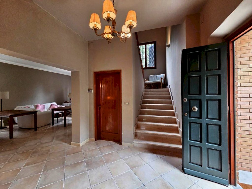 La villa è circondata da un curato giardino su quattro lati. Davanti alla cucina si apre una gradevole terrazza, perfetta per pranzi e cene all’aperto, mentre sul lato opposto, riservato e non visibile, si trova una zona pavimentata adibita a parcheggio per più auto. Accogliente e luminosa, ideale per chi cerca tranquillità e comfort
