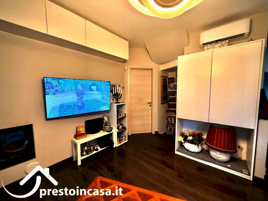 L’ingresso si apre su un luminoso soggiorno che si collega perfettamente a una spaziosa cucina abitabile, ideale per la vita quotidiana e per accogliere ospiti. Sempre al piano terra rialzato si trova un bagno completo, caratterizzato da eleganti rifiniture.