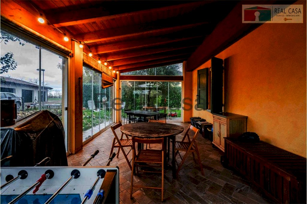 La corte esclusiva ci conduce allo spazioso ingresso/salottino e al soggiorno, a seguire abbiamo una ampia cucina collegata allo spazioso portico vetrato comodissimo sia nelle stagioni più fredde che nei periodi più caldi dell'anno. Il PIANO TERRA si completa di un locale ove ricavata una seconda cucina, due bagni finestrati, un living/pranzo ed una prima camera/studio. Anche il PRIMO PIANO possiede le splendide travi a vista ed i soffitti alti che danno una meravigliosa sensazione e grande respiro. Si compone di ben 4 stanze da letto e doppi servizi.
