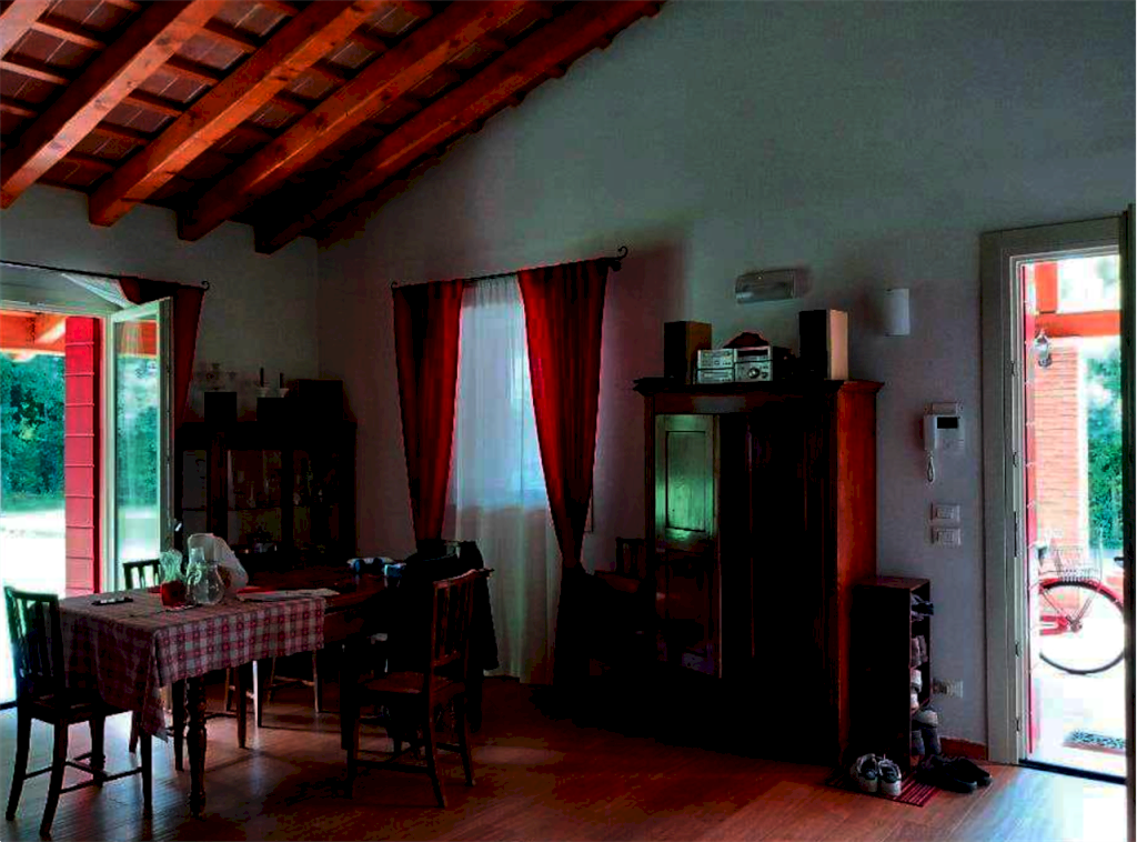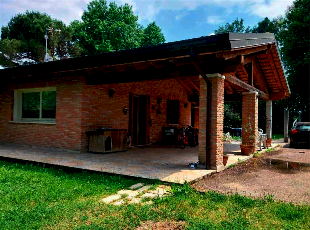 Villa singola con ampio scoperto di circa 3.200 metri quadri situata a Mogliano Veneto (TV) in via Ghetto, composta da solo piano terra con una parte di ampliamento non finita fatta di una platea con pilastri, e un grande giardino con una piccola tettoia. Presenta portico dal quale si accede all'ampio soggiorno aperto sulla zona cucina-sala da pranzo, corridoio, un bagno con la centrale termica separata, ripostiglio, stanza predisposta per essere un bagno (non realizzato), tre camere da letto ed uno studio.