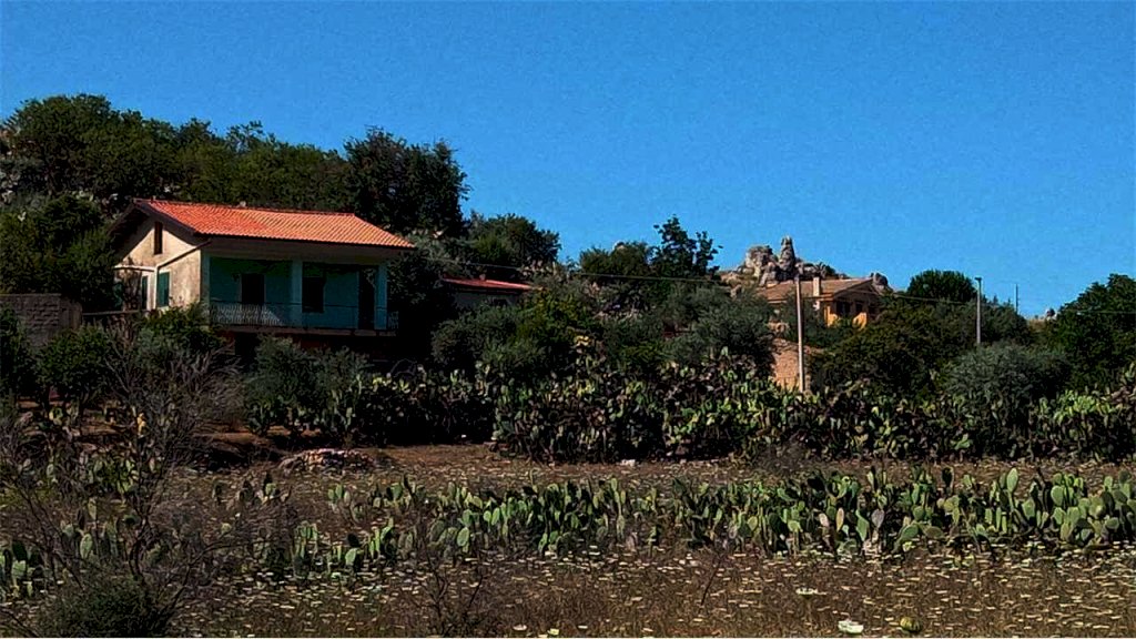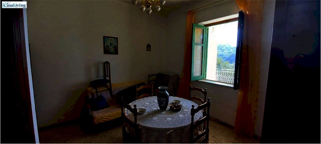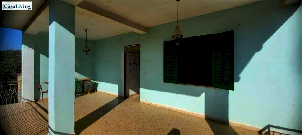 Al piano terra troviamo un comodo magazzino, mentre il primo piano, accessibile da un ampio terrazzo panoramico di circa 30 mq, ospita un'abitazione composta da: ingresso su corridoio, soggiorno, due camere da letto, cucina e bagno con vasca. L'immobile necessita di ristrutturazione, ma offre buone potenzialità grazie ai pavimenti in marmo, infissi in alluminio a taglio termico, persiane in alluminio e cisterna idrica da 30.000 litri.