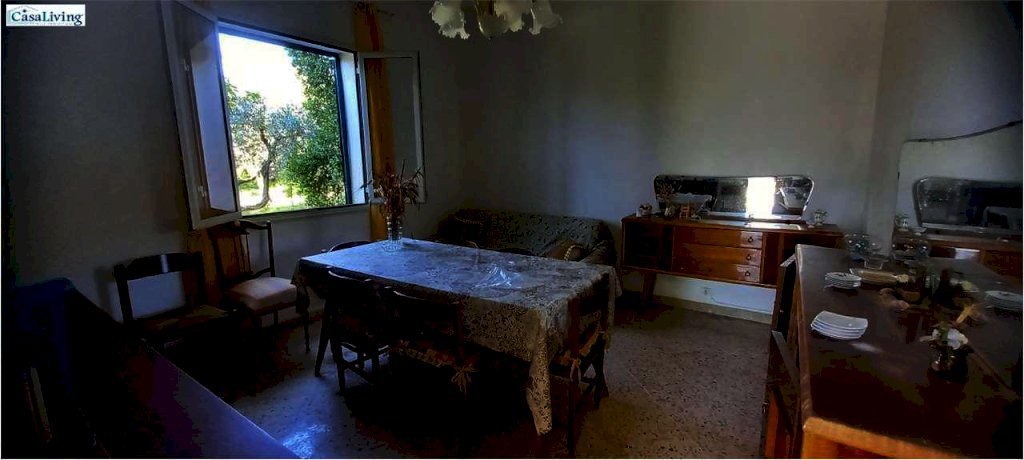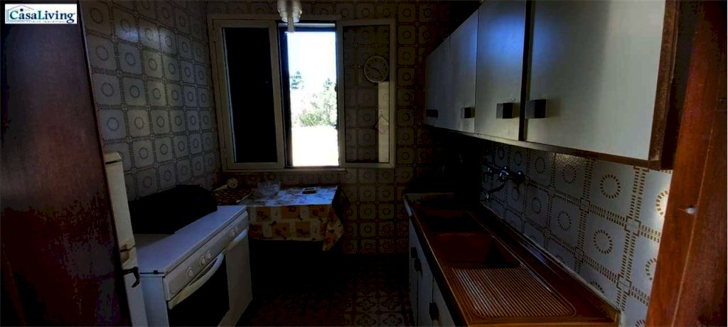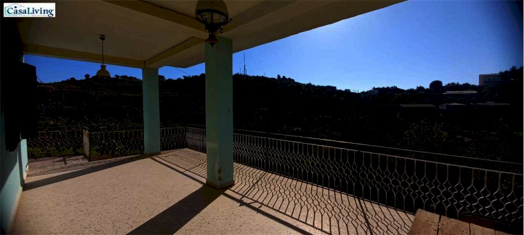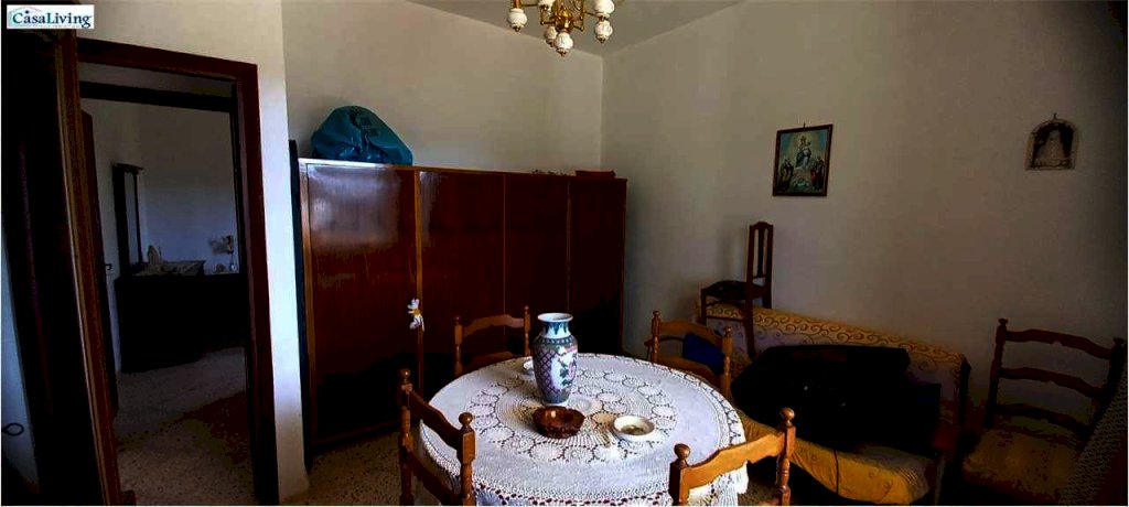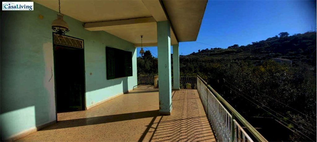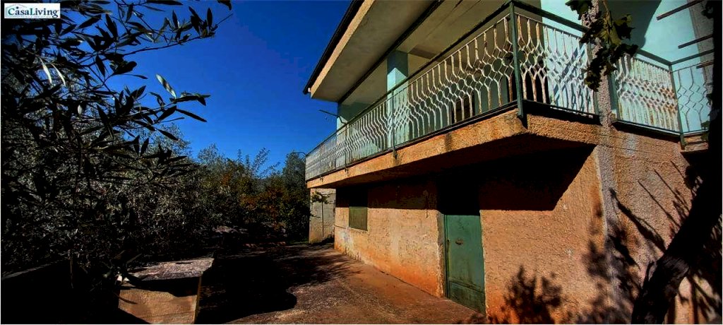 Al piano terra troviamo un comodo magazzino, mentre il primo piano, accessibile da un ampio terrazzo panoramico di circa 30 mq, ospita un'abitazione composta da: ingresso su corridoio, soggiorno, due camere da letto, cucina e bagno con vasca. L'immobile necessita di ristrutturazione, ma offre buone potenzialità grazie ai pavimenti in marmo, infissi in alluminio a taglio termico, persiane in alluminio e cisterna idrica da 30.000 litri.